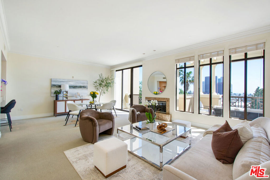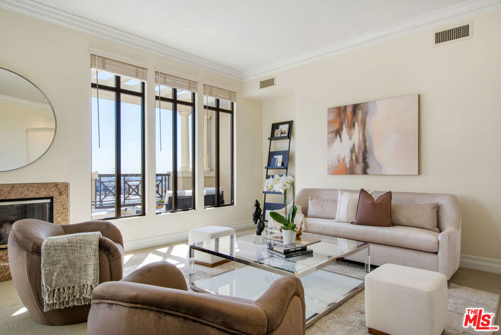 Experience the pinnacle of Brentwood sophistication. Perched atop the prestigious Westgate Condominiums, this breathtaking 2-Bedroom, 2.5-Bathroom Penthouse plus spacious Den is a masterclass in coastal-urban luxury and an entertainer’s delight. Originally hand-selected by the developer, this residence boasts soaring 10-foot ceilings and an expansive, sun-drenched floor plan anchored by a stately gas fireplace. Designed to inspire, every corner of the home captures a symphony of vistas, from the rugged beauty of the Santa Monica Mountains and the Getty Center to enchanting peek-a-boo ocean views shimmering in the distance. The gourmet kitchen features an eat-in layout with mountain views and sliding-door access to a terrace, perfect for morning coffee or outdoor dining. Spanning four magnificent terraces totaling approximately 500 sq. ft. the indoor-outdoor flow is simply unparalleled. The palatial primary suite is a true sanctuary, bright and inviting with a fireplace, private sitting area, walk-in closet, and a spacious spa-inspired marble bath featuring dual sinks, a soaking tub, and separate shower. For the discerning collector, the property includes a staggering, oversized private garage, a rare find with room for a third vehicle and secured storage. Hosting is effortless with 30+ dedicated guest parking spaces and a high-tech haven equipped with gigabit fiber and a bespoke 24/7 security system. Complemented by white-glove 24-hour concierge service, a fitness center, and a lush spa, this residence is situated moments from San Vicente’s world-class dining, boutiques, coffee houses and markets. Unrivaled exclusivity and modern elegance await.