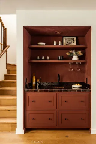 Welcome to 11875 Nebraska Ave., a rare opportunity to own a Nebraska Manor townhome that has been reimagined with Italian inspired elegance! Located in one of the most walkable neighborhoods in highly sought-after Sawtelle, the home is moments from local cafés, restaurants, shops, and everyday conveniences. It is also within walking distance to Stoner Park featuring tennis courts, open green space, and recreational areas, offering the perfect balance of lifestyle and location. Inside, the home features engineered white oak flooring, abundant natural light, and a warm, inviting atmosphere. One of the standout architectural features of the home is the central atrium, bringing additional natural light into the interior while creating a peaceful private outdoor retreat visible from multiple areas of the home. The remodeled kitchen includes off-white inset cabinetry, modern fixtures, and ample counter space centered around a spacious white oak kitchen island finished in a dark walnut stain, creating a layout ideal for everyday cooking and entertaining. The living space is further enhanced by a fireplace and built-in bar featuring a Zia Tile adding warmth. The powder room makes a bold design statement with a Calacatta Viola fluted marble sink, adding a unique architectural touch. The primary suite offers a spacious retreat with excellent natural light, generous closet space, and a peaceful balcony.The primary bathroom showcases elegant marble tile by Zia Tile, creating a spa-inspired atmosphere.The two additional bedrooms provide flexible living options and are ideal for family, guests, or workspace needs. The second full bathroom showcases stylish finishes including elegant Carrara marble countertops, modern fixtures, and distinctive tile work. Upstairs also features a versatile den area, perfect for a home office, media space, reading nook, or additional lounge area. Additional features include designer lighting throughout, a low HOA of $425, an attached two-car garage with additional storage, a dedicated laundry area, and gated community access for added privacy. With its combination of thoughtful updates, distinctive designer finishes, unique architectural details, and outstanding walkability, this home offers comfortable living in a West Los Angeles location that supports an active and connected lifestyle.