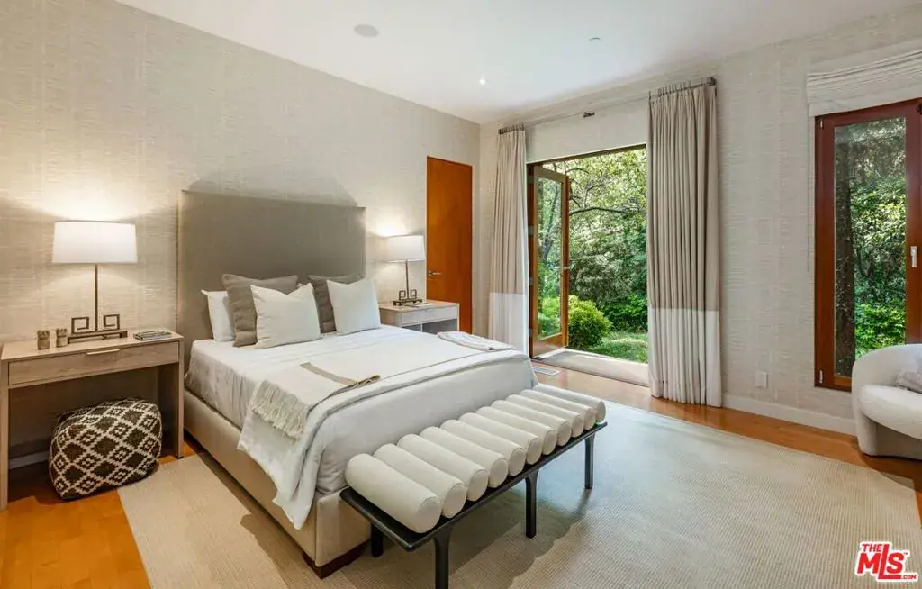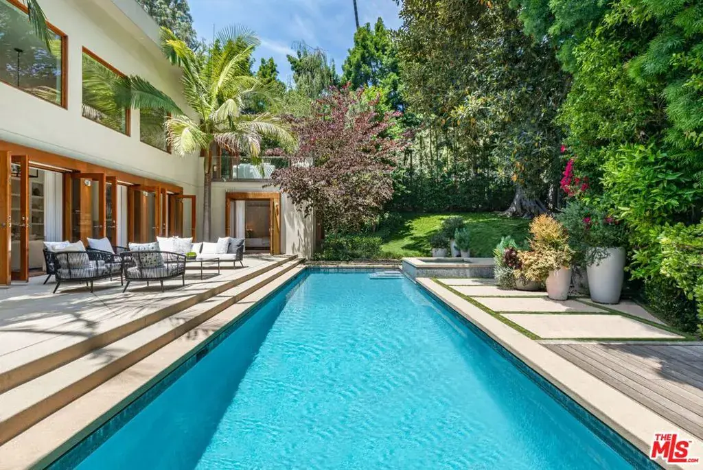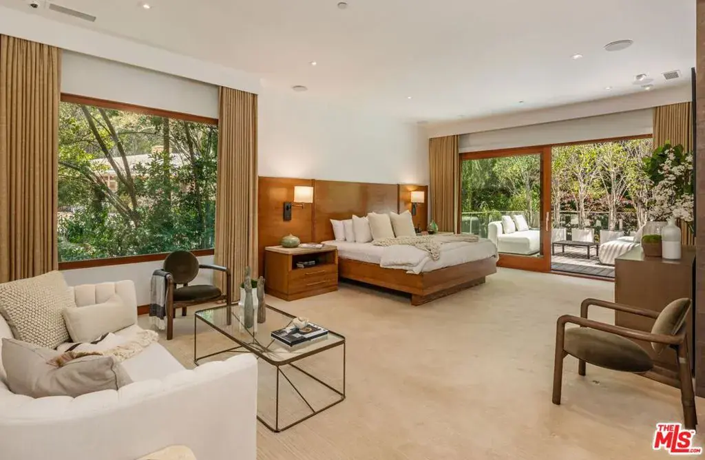 A contemporary estate nestled behind a long, gated driveway in prestigious Holmby Hills. This architectural home opens to a two-story living room with gallery lighting, skylights, and floor-to-ceiling windows framing lush, park-like grounds with pool, spa, and large deck on half an acre. The open floor plan seamlessly connects the dining room, family room, and sleek chef’s kitchen with top-tier appliances. Upstairs, the primary suite offers a fireplace, a spacious balcony, a walk-in closet, and a spa-like bath. 5 bedrooms and 5.5 baths offer ample space for family and friends. Thoughtful details throughout include jade and Jerusalem stone, maple floors, and textured walls. House is equipped with a full-house generator, top of the line window break protection on all glass doors and windows, plus shutters that close at night. Large motor court and 3 car garage offer plenty of parking space. Ideally located near Harvard-Westlake Middle School, offering convenience and prestige. Also available for lease $49,500/month.