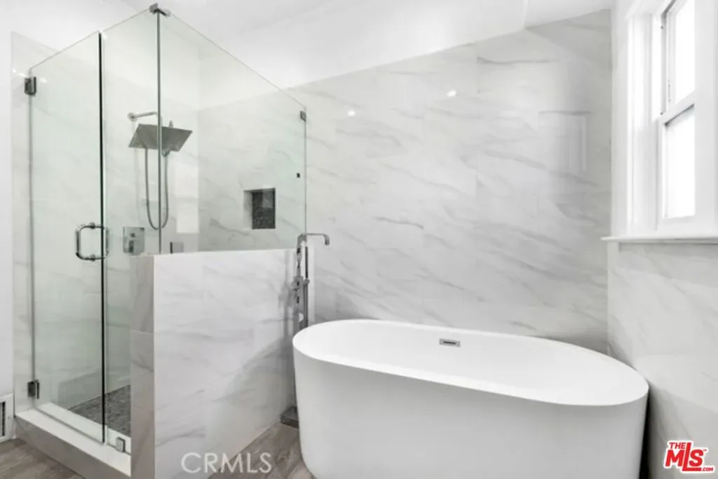 RARE TO FIND A HOME WITH A POOL AND ENTERTAINMENT SETTING IN 90004 AREA. NOW AVAILABLE ONLY, LIMITED-TIME. IN 2024, THIS INCREDIBLE HOME WAS PRICED AT $2,199,000, NOW IT’S PRICE TO SELL VERY QUICK, OUT-THE-DOOR. Heater Pool/Spa with WATER FEATURE. SOLAR PANELS WITH EV CHARGING STATION. Welcome to your very own slice of California history. Nestled within beautiful Craftsman homes. minutes from Larchmont Village, stands your newly renovated and meticulously restored classic Bungalow Craftsman home, east of Historic Hancock Park/Windsor Square. The first thing you’ll notice is the stunning curb appeal. The extra large front porch, newly landscaped front yard, and gated driveway will draw you in and have you wanting more. Just through the massive mahogany front door is your spacious yet cozy living room, featuring original solid mahogany moldings and hardwood flooring throughout. The formal dining room and an oversized chandelier. Next up, say hello to your dream kitchen. This artfully designed and reimagined kitchen features brand-new custom cabinetry with in-set doors and matching Stainless appliances. With plenty of storage and countertop space, this is the ultimate chef’s kitchen. Enjoy a morning coffee in the adjacent cozy breakfast nook featuring a private enclave of covered patio like no other, and plenty of natural light. Just around the corner is your designated laundry area that features a utility sink and storage for cleaning supplies. Through the hallway is a large secondary bedroom with two closets situated just next to the beautifully renovated guest bathroom. Opposite the secondary bedroom is the spacious and bright master bedroom featuring massive windows that overlook the backyard, a large mirrored closet, and a newly-renovated master bathroom with a double vanity and full-size shower. Upstairs is a massive loft space that could be used as a bonus room or den along with a newly-renovated 3/4 bathroom. Electrical and plumbing have been replaced to modern standards with a brand new AC and tankless water heater. Backyard, with its open landscape surrounded with beautiful drought friendly plants, is the perfect backdrop for anything from a serene afternoon with a book to a cocktail party around the fire pit. Close proximity to some of the best dining and nightlife that LA has to offer, this home has it all! Heated Pool/spa, water feature that you can’t find it in this AREA. Don’t miss out on this rare GEM!! Your family will appreciate you for many years to come!!