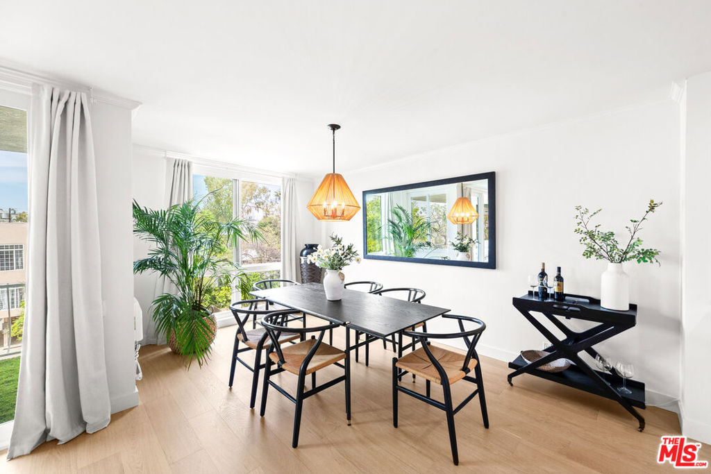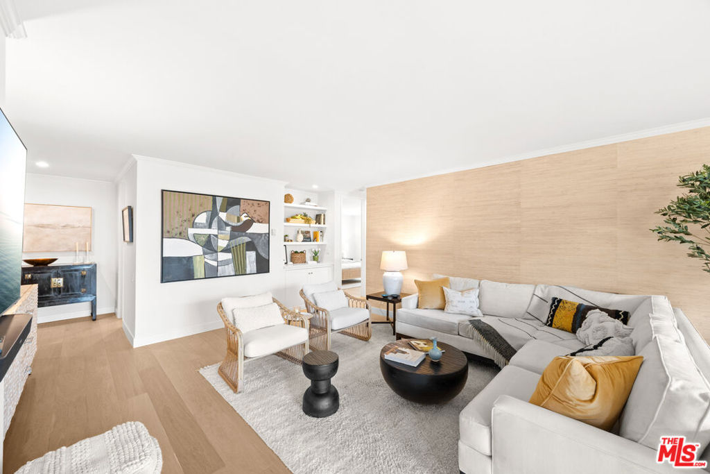Welcome to 11918 Kiowa #201, a beautifully updated, front-facing residence offering refined luxury and effortless sophistication in the heart of Brentwood. Surrounded by tranquil, tree-lined vistas and blooming jacarandas, this elegant 2-bedroom, 2-bath condominium blends serenity with vibrant city living. Bathed in natural light, the open-concept floor plan is framed by floor-to-ceiling double-pane windows and enhanced by newly installed wood flooring, creating a seamless indoor-outdoor experience. The spacious living area opens to an oversized private balcony, offering a peaceful outdoor setting ideal for morning coffee, unwinding in the evening, or enjoying quiet moments throughout the day. The designer kitchen features custom white cabinetry, pull-out storage, quartz countertops, custom lighting, and new stainless-steel appliances, flowing into a generous dining area ideal for both intimate dinners and effortless entertaining. The primary suite offers a calming, elevated ambiance with views of surrounding treetops and overlooks the inviting private balcony, complemented by a walk-in closet and a spa-inspired bath with soaking tub and shower. The secondary bedroom is thoughtfully positioned for privacy and features generous closet space, along with a beautifully updated en-suite bathroom with refined finishes, creating a welcoming retreat for guests or a sophisticated home office. Additional features include in-unit laundry, a formal double-door entry, two side-by-side parking spaces, and abundant storage. Residents enjoy a well-maintained building with controlled access, elevator service, a renovated lobby and recreation room, secure garage parking, lush landscaping, and earthquake insurance. Perfectly situated with a Walk Score of 88, just moments from Brentwood’s premier dining, boutiques, and everyday conveniences along Wilshire and San Vicente, this home offers an exceptional blend of comfort, style, and location.