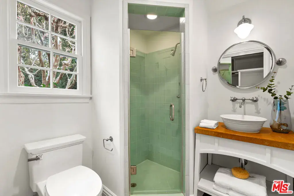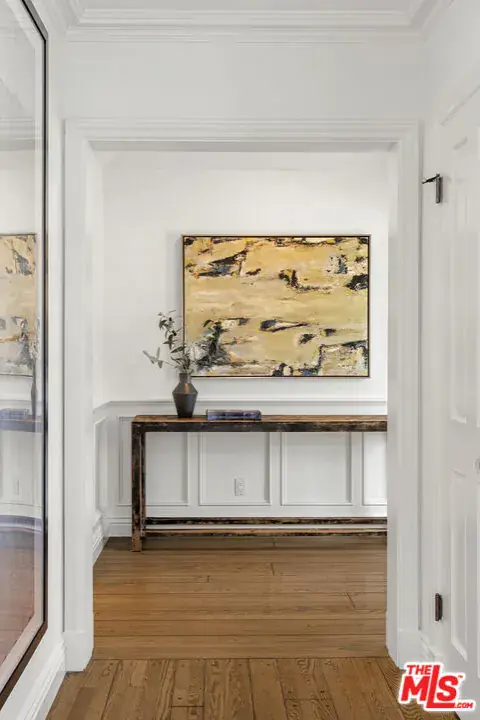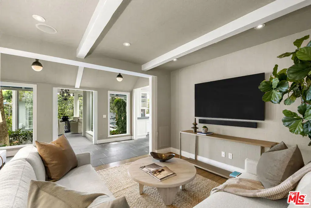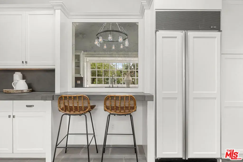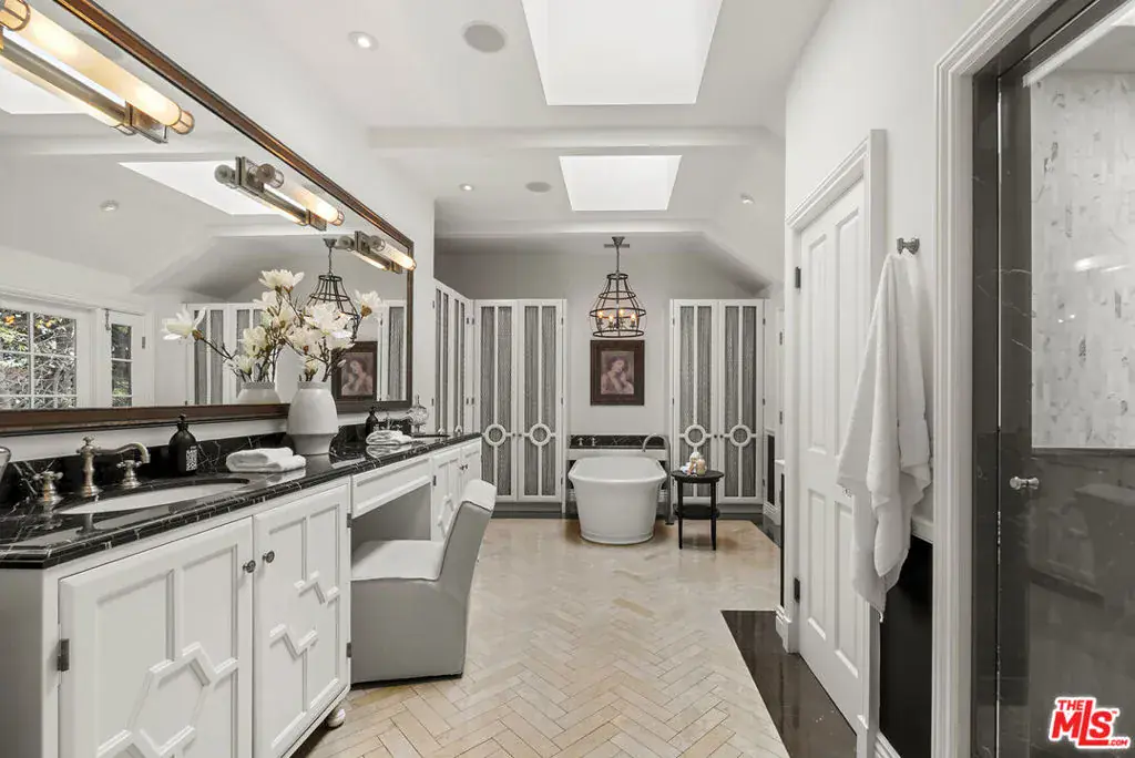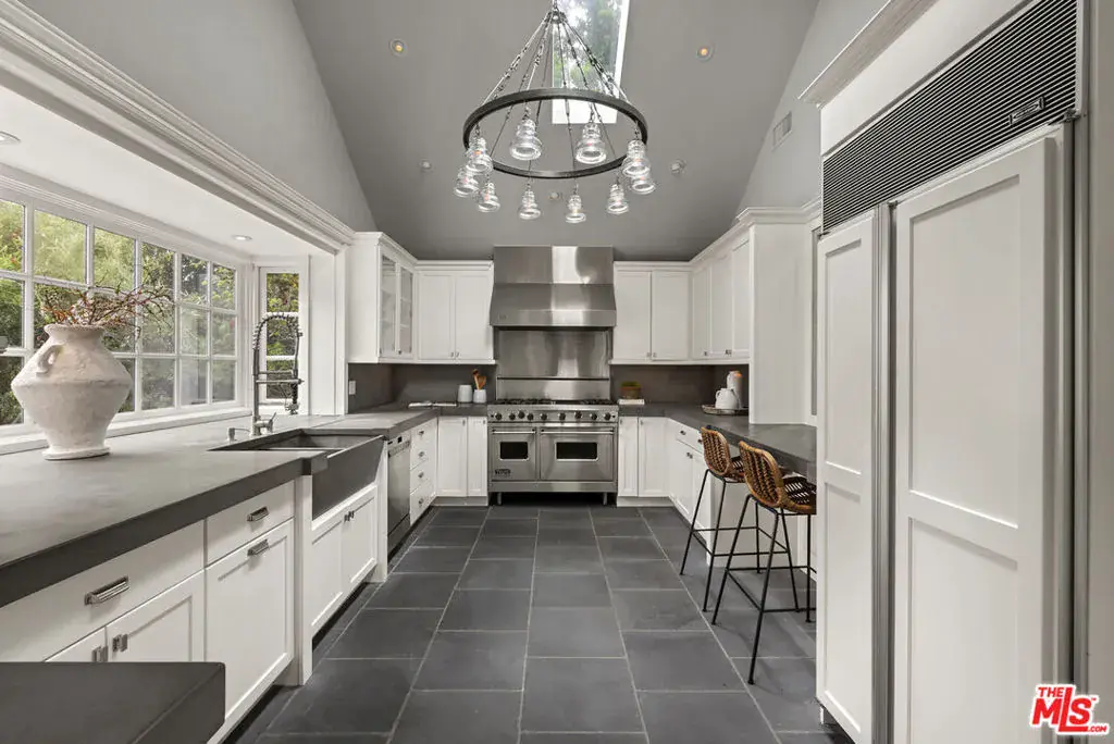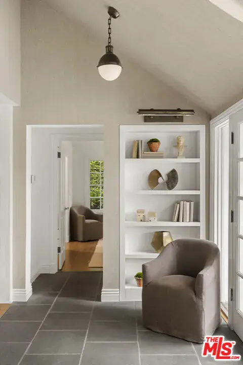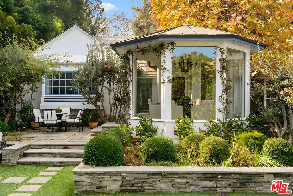 Set on a quiet & highly desirable stretch of Saltair Terrace, just minutes from Brentwood Village, this enchanting traditional offers exceptional privacy & timeless appeal. Secluded behind high walls, surrounded by mature, lush landscaping & storybook English gardens, the property feels like a private Shangri-la– peaceful and serene, yet conveniently close to shops, restaurants, & everyday services. The welcoming grounds are truly magical, featuring multiple spaces for outdoor dining, relaxation, & play, anchored by a sparkling pool & spa. French doors & floor-to-ceiling windows throughout the home invite abundant natural light & create a seamless indoor-outdoor flow. Inside, the spacious living room opens to the family room & overlooks the picturesque yard, while the adjacent dining room is wrapped in walls of glass, further connecting the interiors to the gardens beyond. An open loggia between the living & dining rooms provides a versatile space ideal for casual dining or lounging. The updated kitchen is both stylish & functional, featuring a Wolf range & oven, stainless steel Sub-Zero refrigerator/freezer, slate-gray countertops, & convenient bar seating. A private vestibule off the main living areas leads to a powder room & to the generous primary suite. This tranquil retreat is enhanced by French doors opening to a secluded garden, airy multi-paned windows, two walk-in closets, an updated primary bath, & abundant storage. On the opposite wing of the home are two additional en-suite bedrooms, one currently configured as an office, with glass doors opening directly to the grounds. A spacious fourth bedroom suite is located above the garage & features high pitched ceilings with a dramatic skylight, charming multi-paned windows, & an updated three-quarter bath. Overflowing with warmth, character, & thoughtful details, this exceptional property offers a rare private haven just moments from the heart of Brentwood.