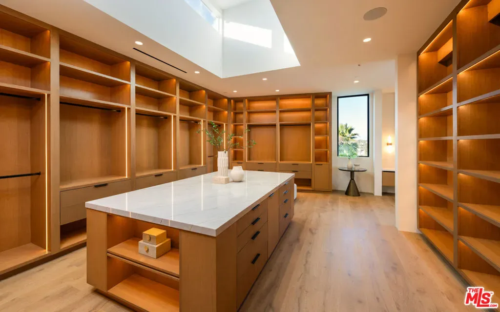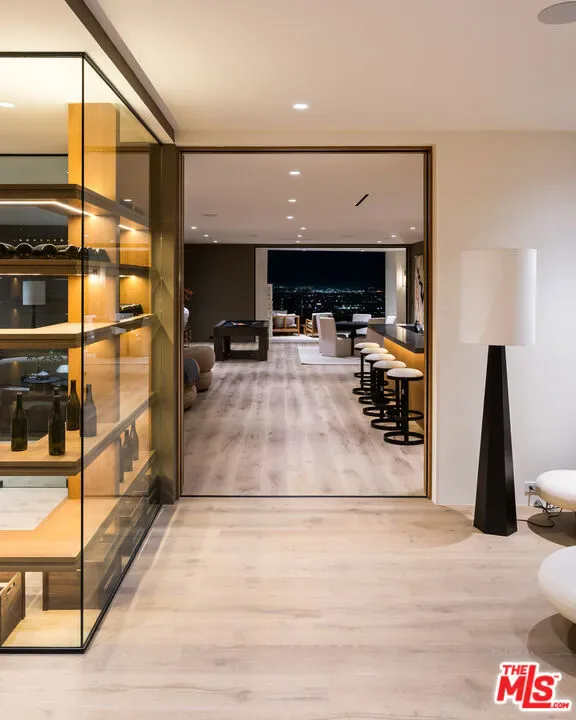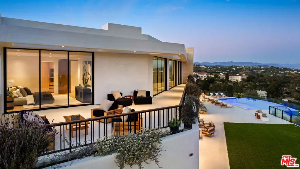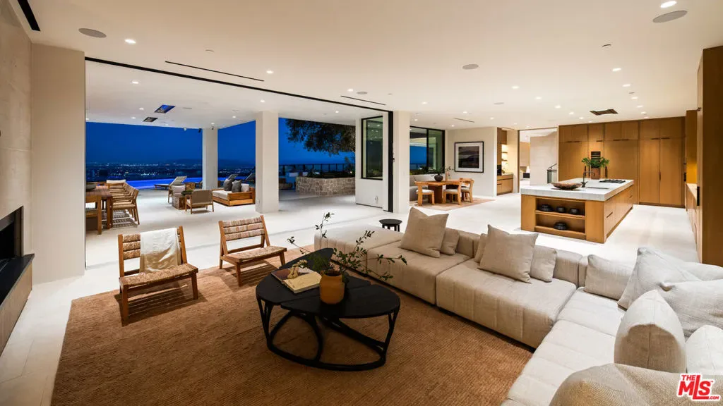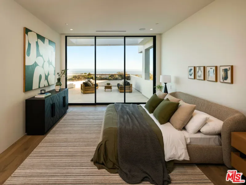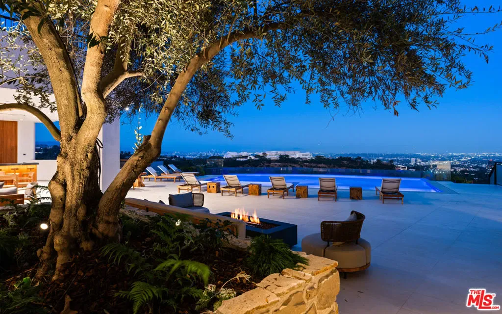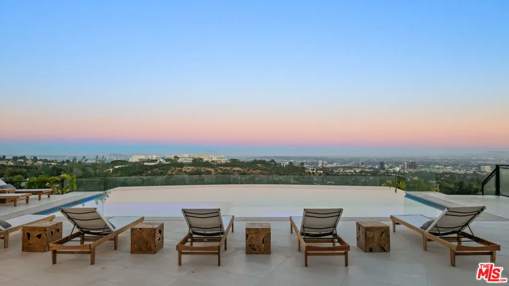 It’s rare to find truly spectacular unobstructed, panoramic views paired with complete privacy, but you’ll find both at The Outlook, a stunning new contemporary home designed by David Maman. Perched atop a private cul-de-sac high above Brentwood, 1204 Chickory Lane spans approximately 15,000 square feet with 9 bedrooms, 16 bathrooms, and breathtaking vistas that sweep from Downtown L.A. and the Getty Center to the Pacific Ocean and beyond. Here, you don’t just see the city you rise above it.Tucked behind double gates, a long private driveway leads to the grand entrance with water feature. Inside, soaring ceilings and sleek pocket doors frame breathtaking vistas and effortless indoor-outdoor living.The main level flows to a resort-style backyard with an edgeless pool, outdoor kitchen, covered patio, and expansive grassy lawn. Interior highlights include formal living and dining rooms, a private office, and a stylish open kitchen with adjoining family area, butler’s kitchen, walk-in pantry, and commercial-grade fridge.Upstairs are 5 en-suite bedrooms, including a luxurious primary suite with dual bathrooms, dual walk-in closets, and an oversized private view patio. Each bedroom enjoys sweeping canyon and ocean views. The amenity-rich lower level offers a bar, pool table, temperature controlled glass wine cellar, screening lounge, and a full wellness center with gym, sauna, steam, cold plunge, hot tub, and massage area. Two ensuite bedrooms provide additional space for guests.Additional features include an 8-car gallery garage with guard room, 2-bedroom staff suite, and dual laundry rooms.Moments from Brentwood’s top shops and dining, 1204 Chickory Lane is where privacy meets elevated luxury.