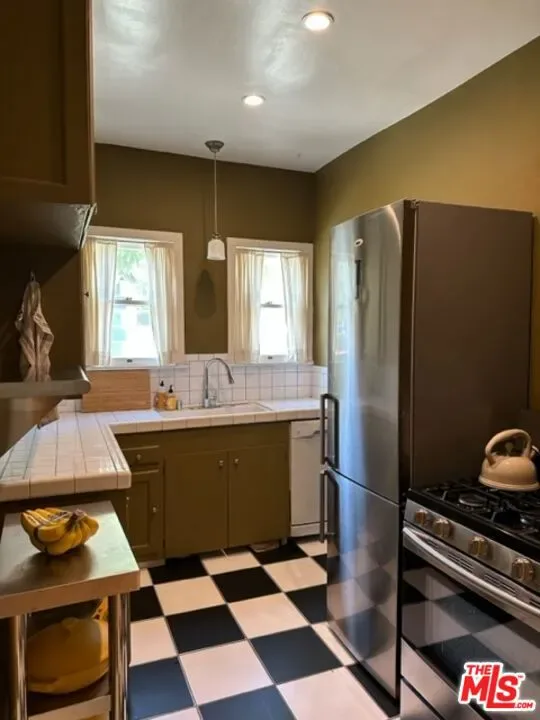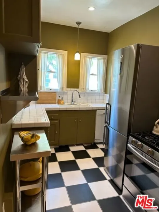 Very charming French Normandy style townhouse style apartment in great area. Two bedroom unit with hardwood floors, recessed lighting. Formal dining room w/bay windows; bay window in living room. Kitchen includes stove, fridge and dishwasher. Large bedrooms w/french windows. Master bedroom has separate make-up area. WASHER AND DRYER IN SERVICE PORCH. Centrally located minutes from Century City, Beverly Hills, The Grove, 25 minutes from DTLA, Santa Monica Beach, LAX. Charming neighborhood.