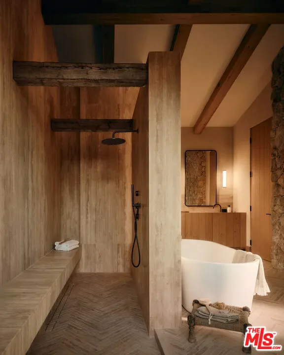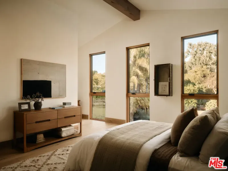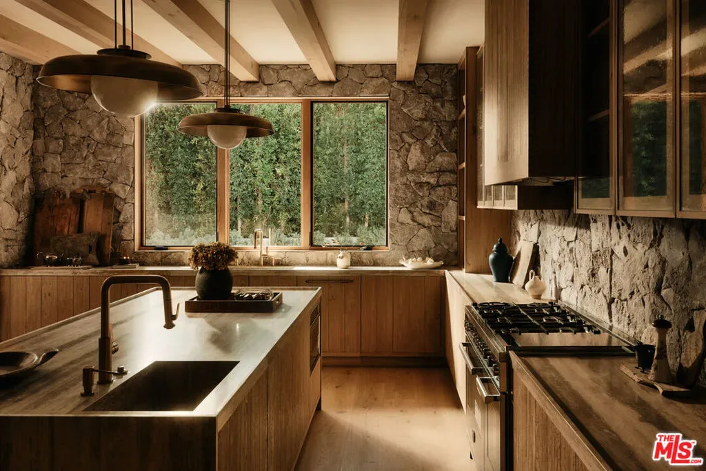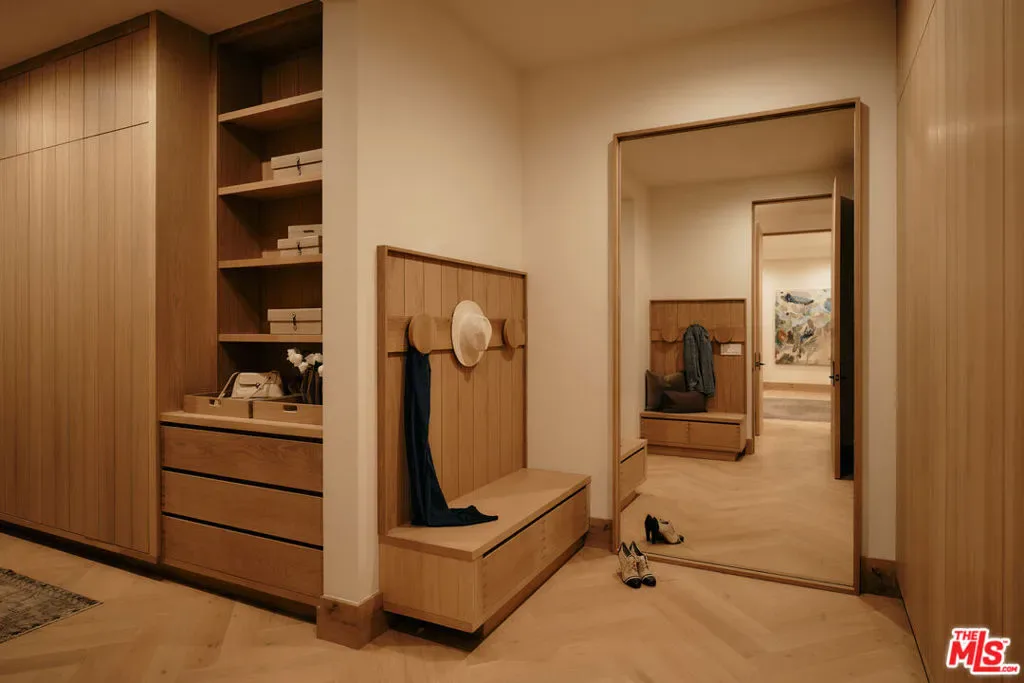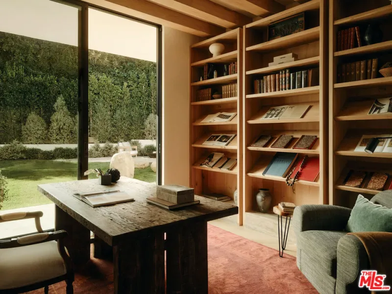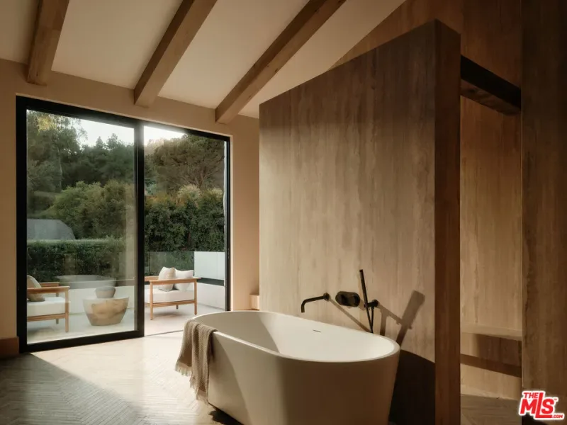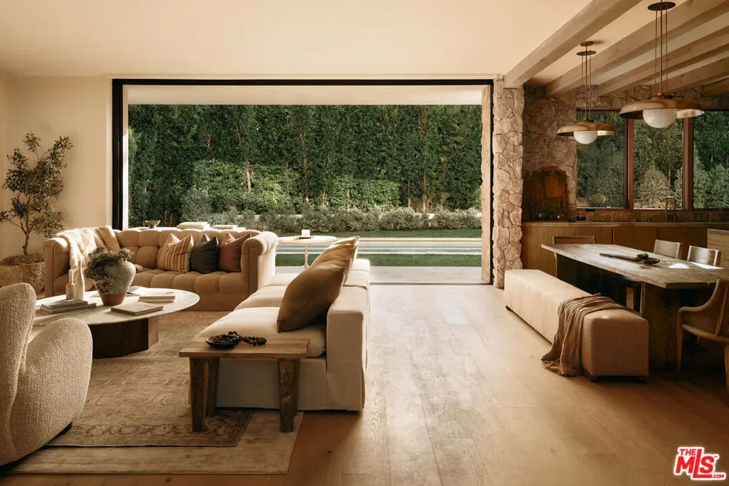 JVE Development Group and Jae Omar present Villa Antica, a newly built architectural residence in Brentwood, designed to evoke the feeling that it has stood gracefully in place for generations. Rooted in classical European influence and realized through a contemporary lens, the home is defined by natural materials, measured lines, and artisan craftsmanship. Offering an uncommon sense of privacy and scale, the residence spans five-bedrooms, six-bathrooms, and sits on a generous 9,618-square-foot parcel. A dramatic double-height entry sets the tone, unfolding into a series of thoughtfully composed living spaces crafted for both daily life and elevated entertaining. Interiors are filled with warm natural light and layered with textured woods, rough-hewn stone, and bespoke millwork. Reclaimed beams over 200 years old bring authenticity and depth, while leathered travertine and brass detailing reinforce a tactile richness. Sculptural lighting design creates a curated ambiance in the expansive great room, which flows effortlessly to the lush backyard through a wall of disappearing glass. At the heart of the home, the kitchen draws inspiration from the French countryside, blending beauty and utility with premium built-in appliances, a substantial center island, oak cabinetry, and a walk-in pantry. The kitchen opens to a sophisticated family room set around a floor-to-ceiling fireplace, while the adjacent dining room is complemented by a custom wet bar. Additional amenities include a glass-enclosed executive office, an immersive home theater, and a distinctive powder room featuring a 1920s French marble sink — subtly reinforcing the home’s collected, old-world narrative. Ascend the floating staircase to the primary suite with a private terrace overlooking the manicured grounds. Vaulted ceilings and a two-way stone fireplace frame this serene retreat that includes a wet bar, boutique dressing room, and luxurious bath. Four additional en-suite bedrooms, with one on the main level, complete the home. Fully integrated Control4 Home Automation System, surround sound, and security cameras facilitate contemporary connectivity and functionality while remaining discreetly in the background. Meticulous landscaping design by Double Green Landscapes extends the home’s sense of permanence outdoors while providing privacy, ample space for gathering, and seamless incorporation of resort-like amenities. The tranquil backyard setting is secluded by mature hedging and features a pool and spa with automatic cover, a fully equipped outdoor kitchen, firepit, and multiple areas to lounge or dine alfresco. Ideally located in Brentwood, Villa Antica is a rare architectural offering where old-world influence and modern design converge in a home that feels both new and enduring.