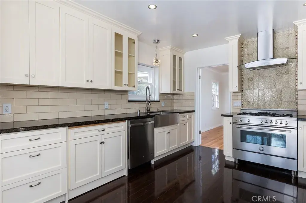 This charming Traditional home is located on a cul-de sac in one of LA’s trendiest neighborhoods. With two beds and 1.25 baths, it features beautifully ornate crown molding, graceful arched doorways, fresh paint inside and out, and newly refinished hardwood floors. Large bay windows in both the formal living and dining rooms flood the spaces with natural light. The updated kitchen blends classic style with modern convenience, offering upscale stainless steel appliances, a clever retractable pull-out desk, an adjacent laundry room with ¼ bath, and French doors that open to covered “pet deck”. Featured on the 2023 Los Angeles Catio Tour, this is the purrfect space for all your furry friends. From the enclosed deck, a sliding barn door leads down some stairs to the expansive, tiered backyard. Ideal for entertaining, it has a covered outdoor dining area with chandelier, grassy area with a built-in concrete Scrabble board, a bi-level wooden deck/seating area, and multiple mature fruit trees. The converted garage – now transformed into a bright, open studio featuring French doors, beamed ceilings, a sink, and generous storage closets – is perfect for a home office, playroom, or creative studio. With close proximity to local favorites like Found Coffee, Little Beast, Cindy’s, Trader Joe’s, and Eagle Rock Park & Rec Center, this home puts the best of NELA right at your fingertips.