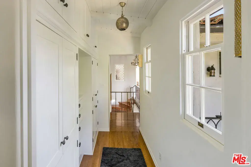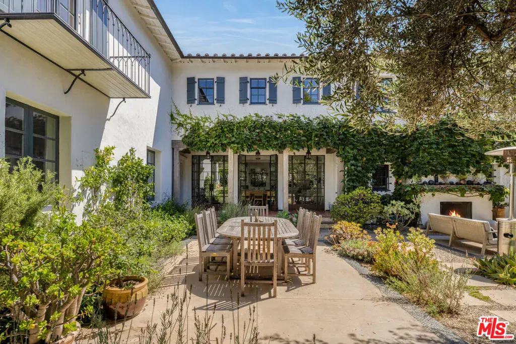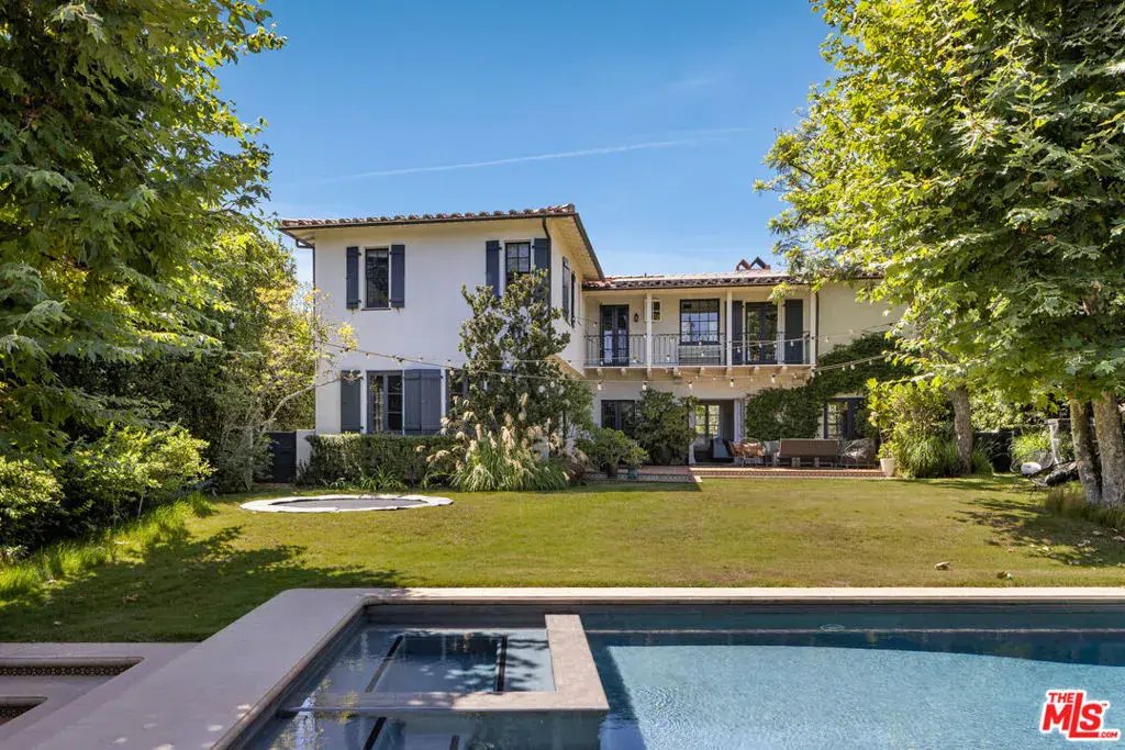 Tucked away at the end of a quiet cul-de-sac off of picturesque South Carmelina, behind tall walls and gates, lies this extensively restored, remodeled and expanded, stately 1930 Spanish. Done by current owner with great taste, quality & sensitivity to the magnificent original architecture with breathtaking gardens, lovely courtyard entry with outdoor fireplace, expansive flat yard, great privacy and exquisite detailing throughout. Inviting entry with original iron stair leads to formal living room with fireplace, inviting family room and fabulous cook’s kitchen with farm table – all of which open through French doors to covered and open patios, expansive lawn, gardens, pool and spa. Cozy formal dining room, two separate offices with built-ins, maid’s & bath, laundry and direct-access private garage complete the sensible first level plan. Upstairs there are five bedrooms, all with en-suite baths, including a fantastic primary suite with separate sitting room with fireplace, lavish bath and two furniture-grade closets. All the signature elements of the period can be found throughout including thick plaster walls, beamed ceilings, hand painted tiles, original hardware & fixtures, ironwork, stained glass, paneled doors, and hardwood & Saltillo tiled floors. Very special offering filled with romance and charm on large lot with resort-like setting in one of Westside’s most desirable locations – close to town and the Sunday Brentwood Farmer’s Market. Available early April 2026.
