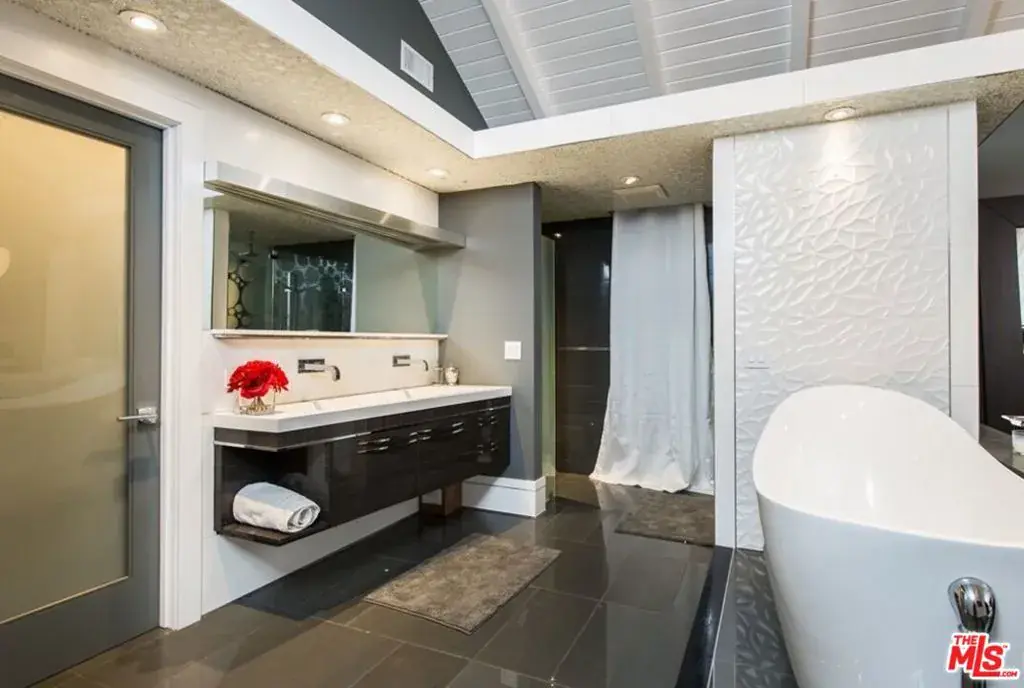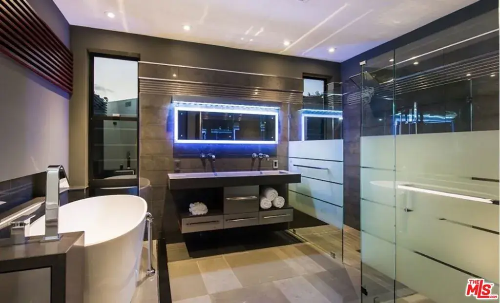 Beyond the gated driveway, resides a custom built, 4,200 sqft modern home located in the heart of Brentwood. Furnished by Modani, grand skylights that compliment the vaulted ceilings, lead to the bi-fold glass walls that effortlessly unite the living space to the expansive exterior. The serene backyard includes, heated pool/spa, outdoor shower, kitchen and cabana, loaded with all entertainment necessities. Sitting on approx. 14,113 sqft lot, this impeccable home offers 4 master suit bedrooms with bi-fold glass walls, 5 bathrooms, sophisticated open gourmet kitchen and last but not least, its unique lighting throughout the interior and exterior. This home is nothing short of lavish, brought to life by renown architect and designer.