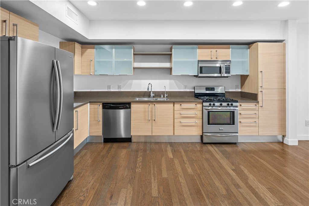 Tucked away in a peaceful corner of the building, Unit 218 in 1234 Wilshire Blvd is the coveted end-unit basked in natural light that you’ve been waiting for. This large 1-bedroom unit faces the quieter Ingraham Street, with no shared bedroom walls and a rare bathroom window for added natural light and air flow. The spacious bedroom includes a nook by the window that is perfect for a work-from-home station. The unit is conveniently positioned near the elevator and trash chute, and its two (2) designated parking spaces are just a short walk away. The Vero Building offers an incredible lifestyle with multiple amenities such as: a recently renovated pool and jacuzzi, an expansive and well-equipped gym (seriously, cancel your membership because you won’t need it!), saunas, multiple lounge and bbq areas, secure key fob access, a package check-in system at the front desk, and 24-hour on-site security. Enjoy true city-living with Grand Central Market, FIG at 7th, Little Tokyo, Crpyto.com Arena, Union Station, and several museums all within walking distance. This move-in ready home offers luxury living in the heart of Downtown Los Angeles, all at an incredible value.
