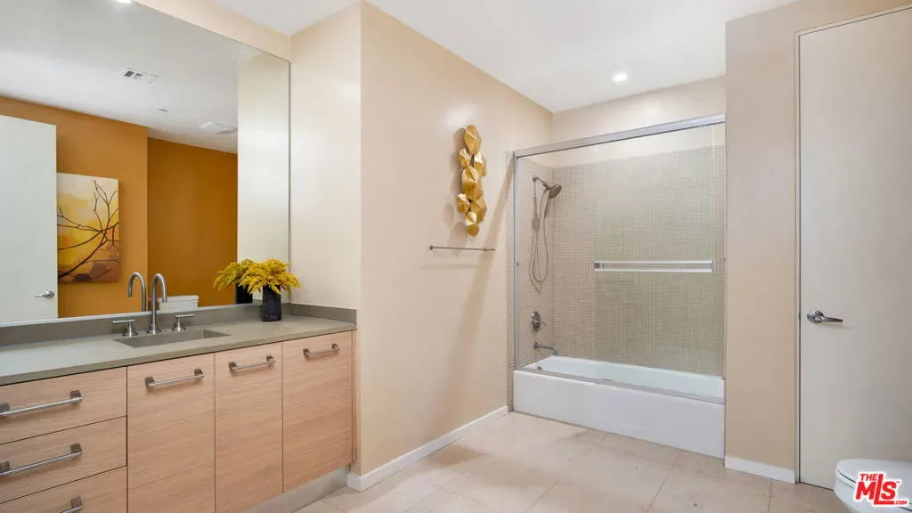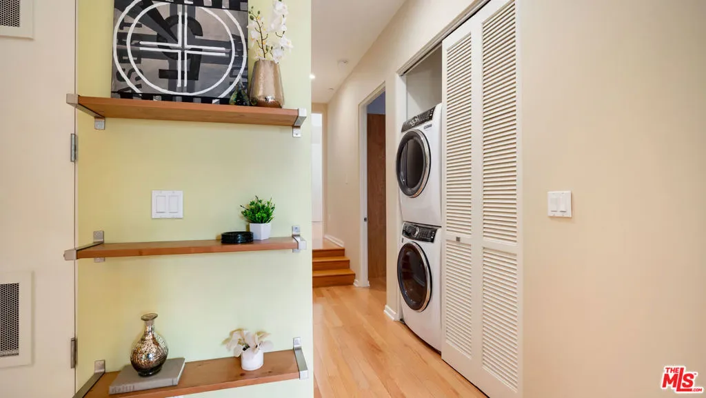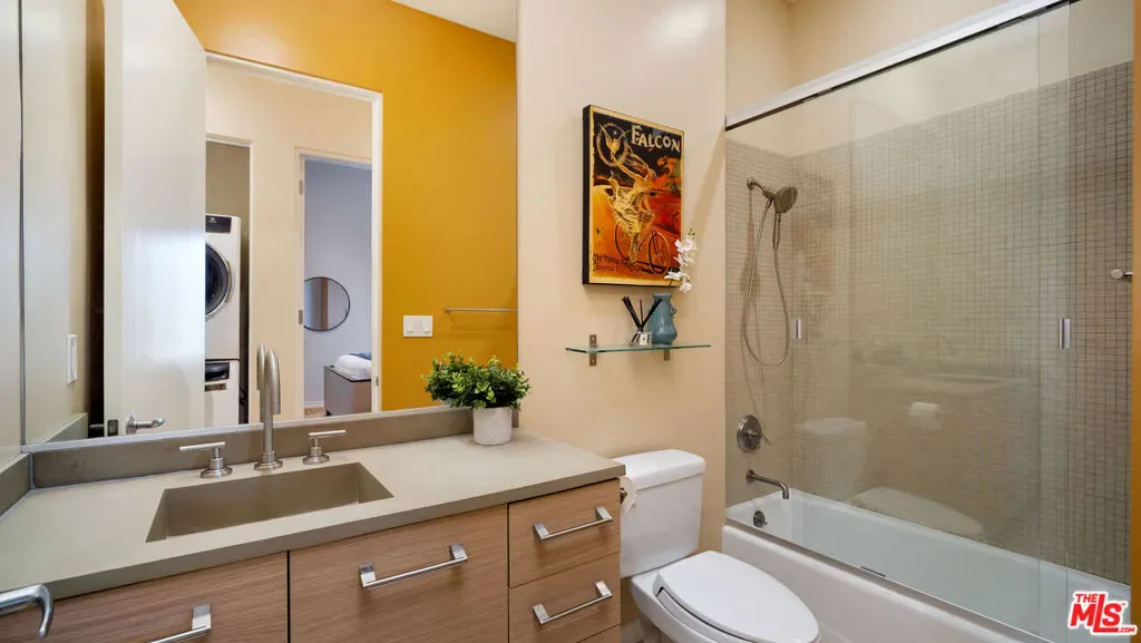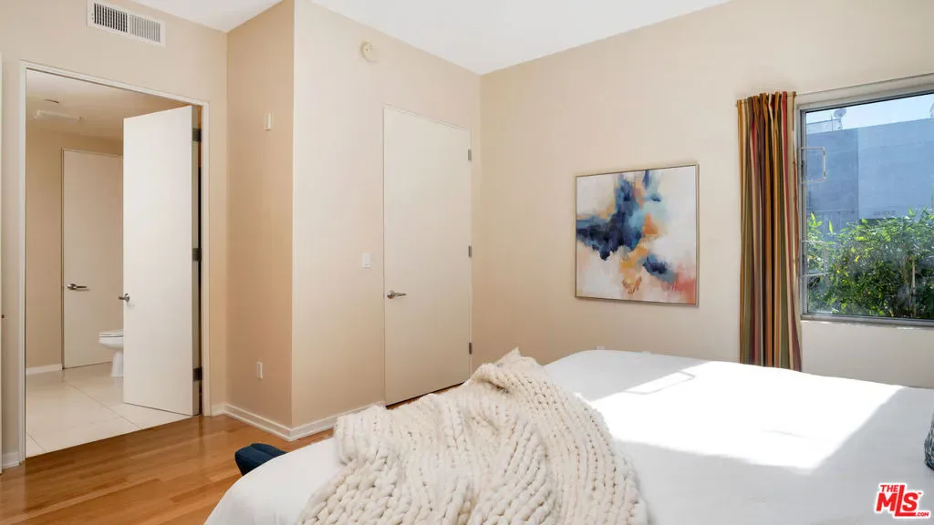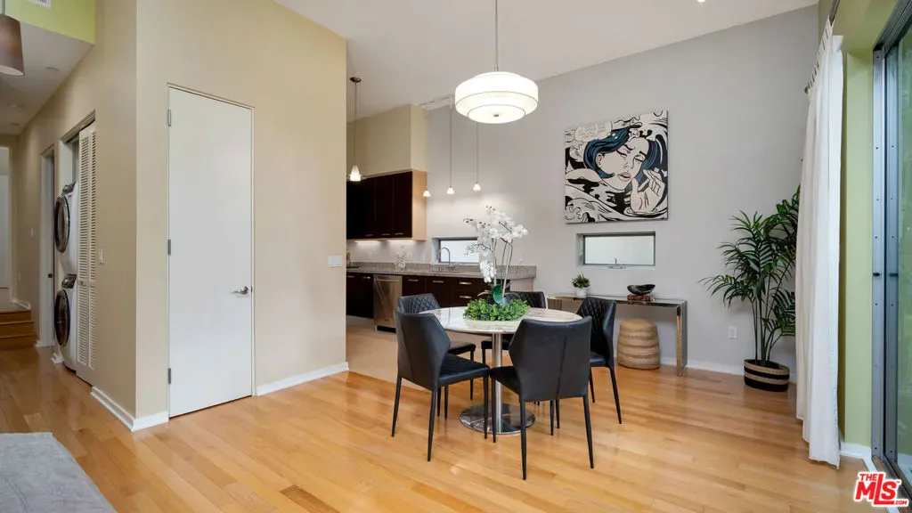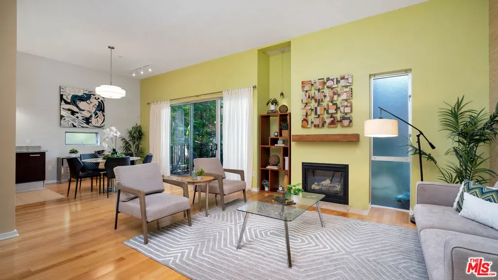 Private, quiet and serene!!! This award-winning architectural living awaits in this Habitat Pacific residence. Front-facing, first-floor corner 2-bedroom, 2-bath condo offers dramatic 11-foot ceilings, and an open floor plan. The interior blends modern sophistication with thoughtful functionality, featuring a sleek, contemporary kitchen with thoughtfully designed built-in storage, stone countertops, and stainless steel appliances, seamlessly connecting to the living and dining spaces anchored by a gas fireplace and warm hardwood flooring. At the entry, a utility closet provides smart storage. The spacious primary suite includes a generous sized closet designed as a blank canvas, ready to be tailored to your needs, along with a spa-like ensuite bath. The secondary bedroom offers flexibility for guests, a home office, or creative space. Indoor-outdoor living is enhanced by a private, courtyard-facing patio, ideal for relaxed mornings or evenings. Additional highlights include in-unit laundry, ample storage throughout, two-car tandem parking in a gated subterranean garage with EV charging, guest parking, and a private storage cage conveniently located near the elevator. HOA dues include earthquake insurance. Perfectly positioned in the heart of Mar Vista, near the Mar Vista Farmers Market, and minutes to Venice, Silicon Beach, Playa Vista, Culver City, and Santa Monica. A refined architectural home offering privacy, convenience, and quintessential Westside living.
