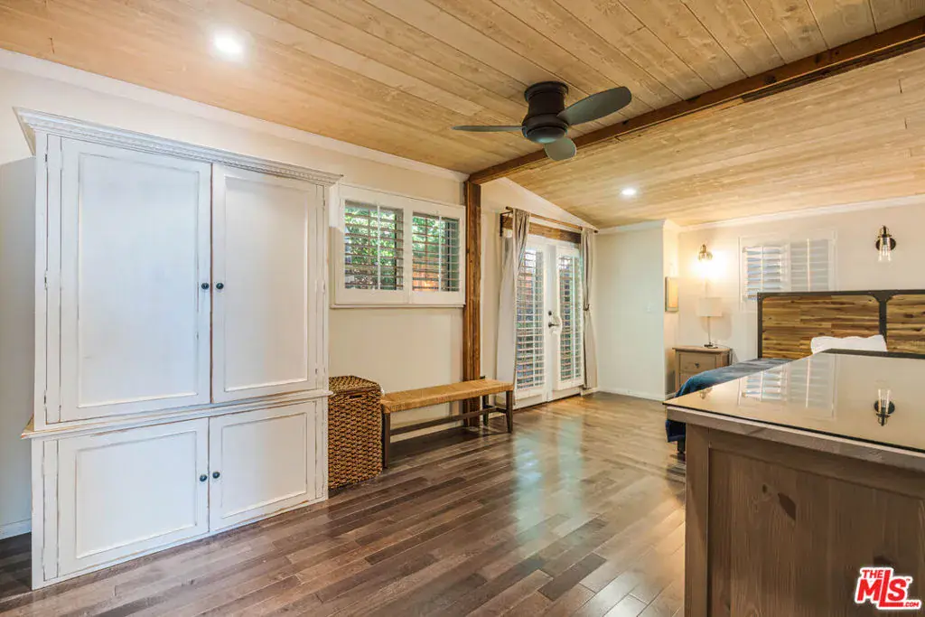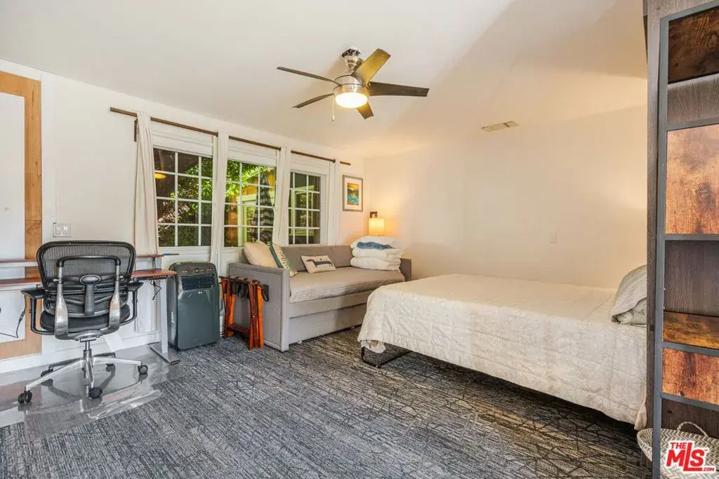 Located in the Del Rey neighborhood, this furnished 3-bedroom, 2.5-bath corner-lot residence includes all utilities and offers generous indoor and outdoor living spaces with a flexible layout designed for everyday living and entertaining. The expansive grass front yard sets the tone as you arrive. Inside, the home opens to a spacious living area filled with natural light from several windows. French doors extend the living space to the front porch, creating a seamless indoor-outdoor connection. The living area flows into the updated kitchen, enhancing functionality and openness. The kitchen features a large center island, stainless steel appliances, and abundant cabinetry, complemented by oversized windows that brighten the space and frame a dedicated dining nook. The primary bedroom provides a comfortable retreat with an updated en-suite bathroom and French doors leading directly to the backyard. Two additional bedrooms offer ample closet space, including one with an en-suite full bathroom. The backyard is well-appointed for outdoor use and includes a stainless steel refrigerator, a second-story deck ideal for entertaining, and a spacious parking area with alley access. Conveniently located near Playa Vista, the 405 and 10 freeways, LAX, and a wide selection of shops and restaurants, this property offers both accessibility and versatility in a sought-after Westside location.