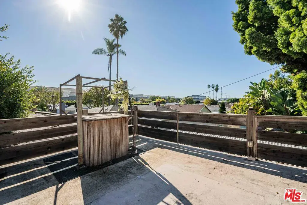 Located in the Del Rey neighborhood, this furnished 3-bedroom, 2.5-bath corner-lot residence offers generous indoor and outdoor living spaces with a flexible layout designed for everyday living and entertaining. The expansive grass front yard sets the tone as you arrive. Inside, the home opens to a spacious living area filled with natural light from several windows. French doors extend the living space to the front porch, creating a seamless indoor-outdoor connection. The living area flows into the updated kitchen, enhancing functionality and openness. The kitchen features a large center island, stainless steel appliances, and abundant cabinetry, complemented by oversized windows that brighten the space and frame a dedicated dining nook. The primary bedroom provides a comfortable retreat with an updated en-suite bathroom and French doors leading directly to the backyard. Two additional bedrooms offer ample closet space, including one with an en-suite full bathroom. The backyard is well-appointed for outdoor use and includes a stainless steel refrigerator, a second-story deck ideal for entertaining, and a spacious parking area with alley access. Conveniently located near Playa Vista, the 405 and 10 freeways, LAX, and a wide selection of shops and restaurants, this property offers both accessibility and versatility in a sought-after Westside location.