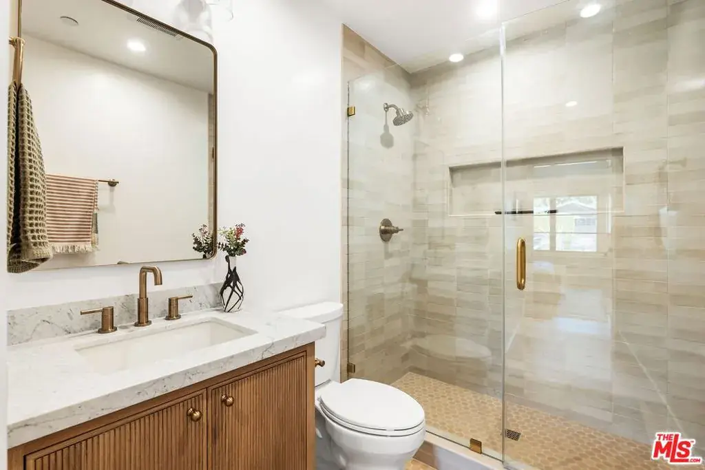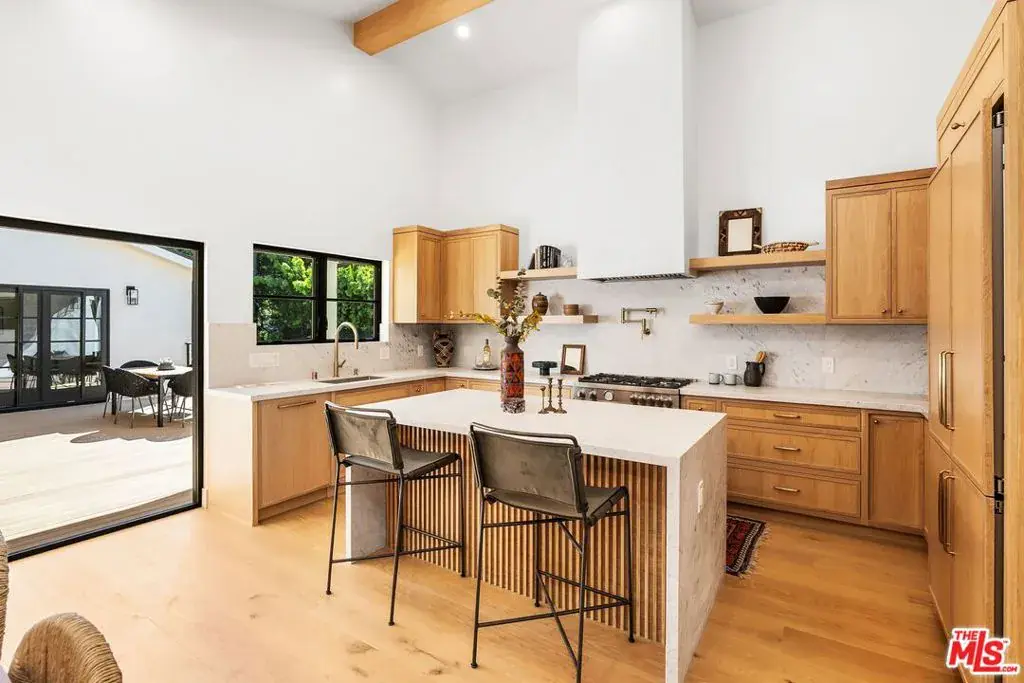 Presenting 12426 Woodgreen Ave, an exceptionally remodeled Mar Vista Hill home expertly crafted by MDI Homes and curated by Joy Margaux Design, where virtually nothing from the original structure remains. From the moment you arrive, you are greeted by striking curb appeal with a metal standing seam roof, white oak siding, and drought-tolerant landscaping with artificial turf and drip irrigation, setting the tone for the refined craftsmanship found throughout.Inside, vaulted ceilings with white oak beams, wide-plank hardwood floors, and skylights with motorized shades fill the home with natural light. The open-concept layout centers around a chef’s kitchen featuring honed marble countertops with a dramatic waterfall island, custom white oak cabinetry, and seamless flow through a La Cantina folding door system to a 700 plus square foot Trex deck, perfect for indoor-outdoor living. Two smooth stucco gas fireplaces anchor the family room and primary suite, while a dedicated wine area and custom built-ins add thoughtful functionality. Milgard windows and doors and ample storage enhance both form and function. The property is fully enclosed with an automatic gated entry, offering privacy and security. Completing the offering is a detached ADU with private side gate access, ideal for guests, rental income, or a home office. A rare opportunity to own an exceptionally remodeled, design-driven home in one of Mar Vista Hill’s most desirable locations.