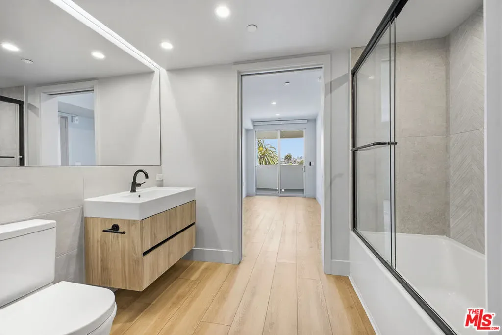 *Pictures are not of the exact unit but same floor plan* Welcome to Archer, located at 12431 Rochester Ave. Residence 410 is a 4th floor unit at 815 square feet. It is East facing with large windows bringing in natural light. This 1 bed + 1.5 bath layout includes a half-bath with a beautiful dark accent wall and assigned modern matte black fixtures. The main bathroom has sliding pocket doors that lead from the bedroom to the walk-in closet which has custom built-in drawers and storage. The bedroom and living room share access to the balcony, which provides a nice flow and extension of the living space. Kitchen is sleek with appliances including a dishwasher and gas stove. Some beautiful details include a built-in spice rack and under-cabinet lighting. Hardwood flooring throughout, stainless steel appliances, in-unit washer/dryer, and smart-home features make for a comfortable and luxury lifestyle. Smart home features include: Nest Thermostats, Lutron Lights, Electronic Window Shades & Keyless Electronic Locks. Property amenities include: Rooftop Lounge, Fitness Center, Conference room, Bike Storage & Smart Intercom. Parking is $150/ month, Pet rent is $50/ month, Internet is $84/month. Contact us today!