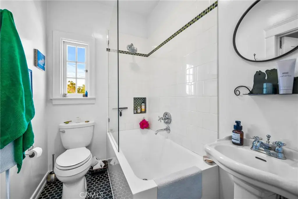 Both the upper and lower residences feature three bedrooms, two full bathrooms, formal living and dining rooms, and chef’s kitchens appointed with professional-grade stainless steel appliances, including a Bertazzoni range, Sub-Zero refrigerator, and generous prep island. Elegant bathrooms, newer HVAC, in-unit laundry, and dual backup generators further enhance the property’s turnkey appeal.