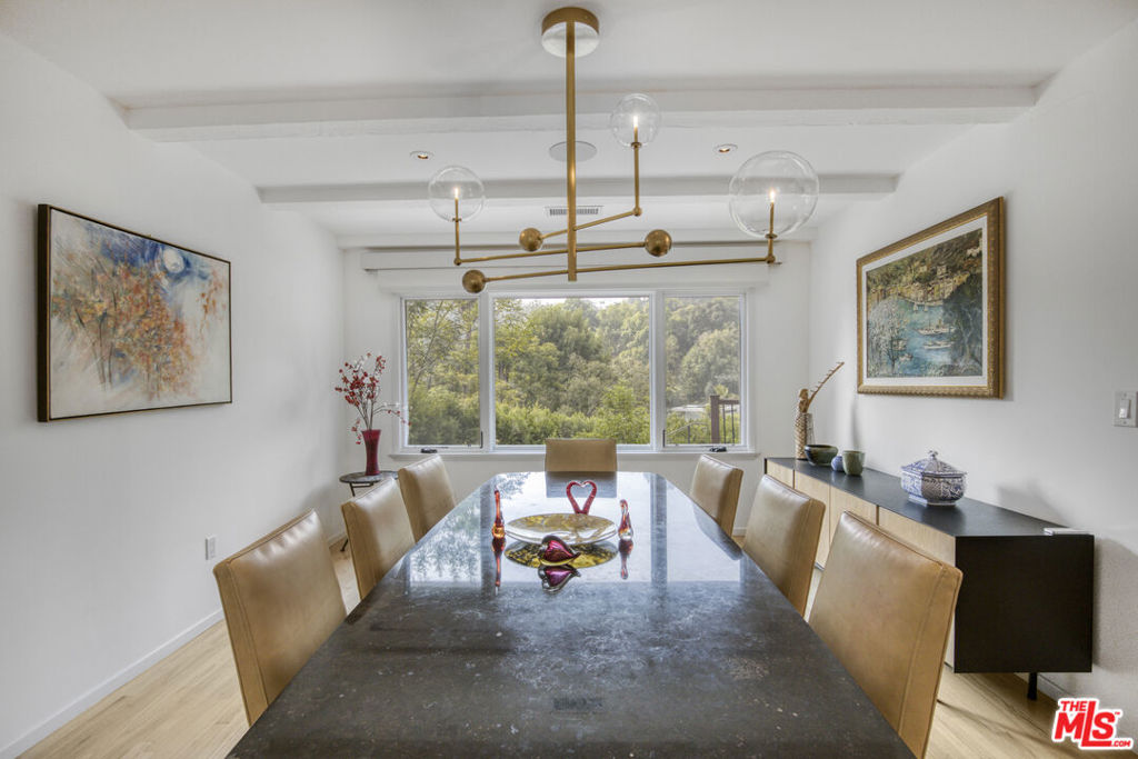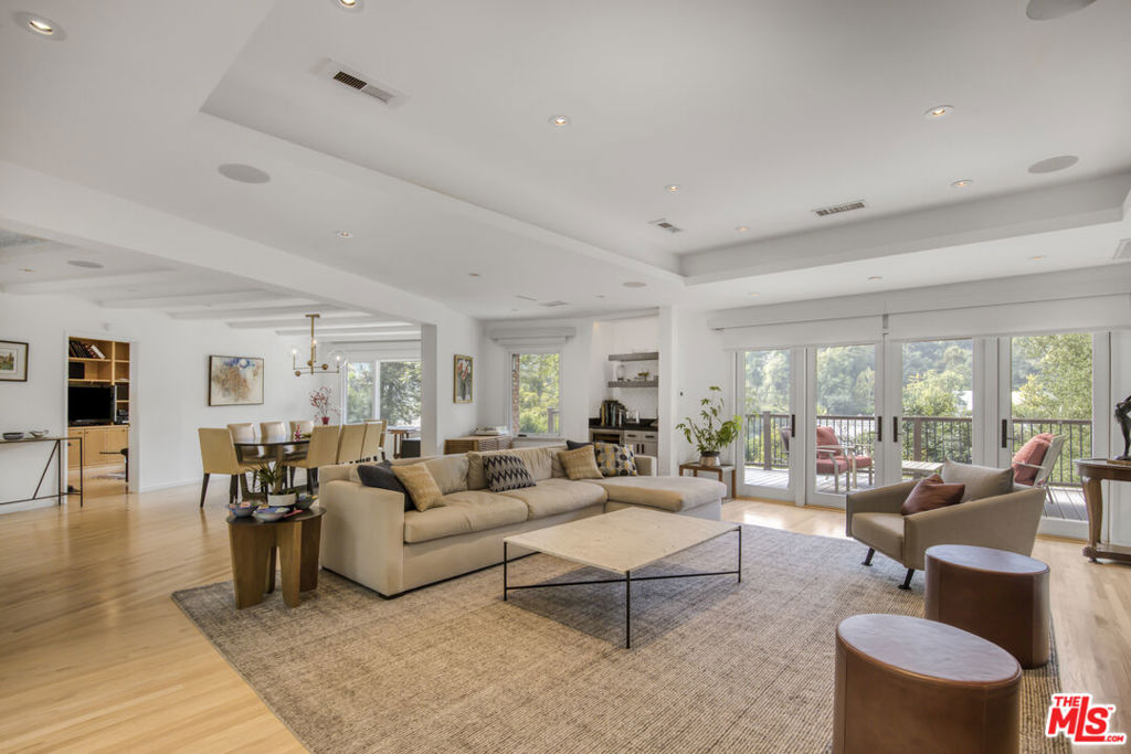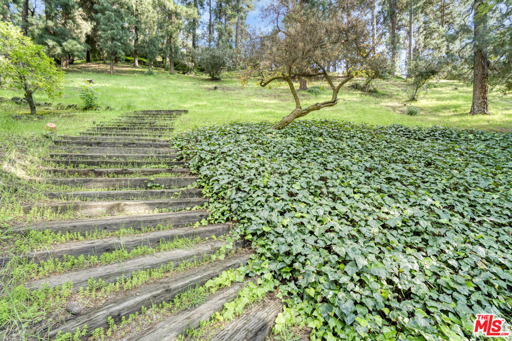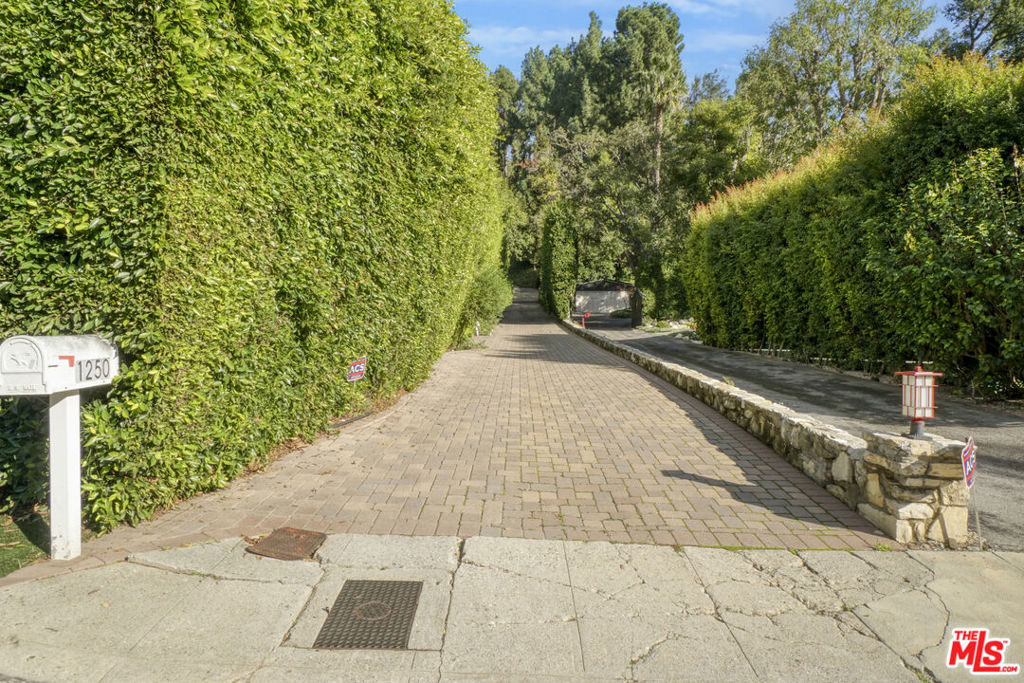 A must see! Gated in lower Bel Air, this unique, serene 3-acre property is tucked far back from the street by a long private drive. The large flat lawn, patio, and deck areas are surrounded by pine and citrus trees, offering a rare combination of total privacy, scale and natural beauty. The extensive outdoor patio entertaining area is equipped with heaters and fans, a built-in barbecue and refrigerator. The recently remodeled bright grand room and dining area has a fireplace, bar with wine refrigerator, and a 15-foot bifold glass door providing an expansive indoor-outdoor living feel. The kitchen is well equipped, including an indoor grill and warmer, and has an eating area that overlooks the lush backyard. The 1st floor primary en suite bedroom has a vaulted ceiling, jacuzzi bath, and private deck/garden. 3 additional bedrooms on the main floor plus a den area all have garden or canyon views. Upstairs is an additional large bedroom & bathroom, with potential use as a gym, studio, or guest room. The attached 2 car garage, with direct access to the home, has a work bench, storage loft, and 2 EV charging ports. There is additional parking for 5 cars within the gated area. The house is equipped with a security system and a sound system. The central heating and air conditioning systems, irrigation system, and electric gate can be controlled remotely. The property offers a convenient location to excellent schools, and is ideally located for easy access to UCLA, Beverly Hills, Santa Monica and the San Fernando Valley.