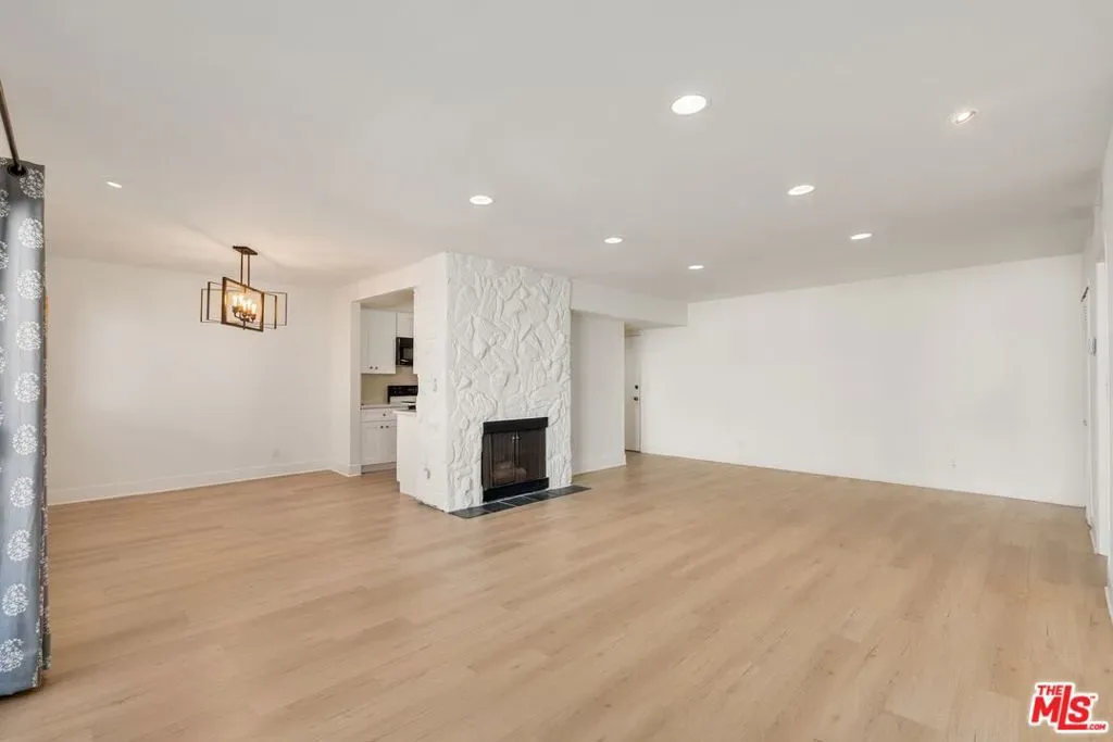Introducing Brentwood-Adjacent WLA gorgeous 2+2 remodeled condo. Spacious and light-filled residence blends classic charm with modern updates. The updated kitchen features newer cabinets, a sleek quartz countertop, a modern faucet and premium large-plank vinyl wood flooring, making it both stylish and functional. The open and airy living room includes a cozy fireplace and sliding glass doors that leads to a private balcony overlooking community pool – ideal for relaxing or enjoying indoor-outdoor living. This unit offers generous room size and a practical layout with brand new carpeting in both bedrooms. Newly installed bathroom vanity & faucets. Interior freshly painted. Central AC & Heat. Two assigned tandem parking spaces with storage cabinets in the gated community garage. HOA dues include water & earthquake insurance. Amenities includes elevator, trash chutes, community laundry rooms in each floor, pool, a large patio/courtyard area and a gym on the 1st level. Centrally located near UCLA, Santa Monica, shops, dining, and major Westside destinations, this condo is a wonderful place to call home. Fireplace is decretive. Easy to show.