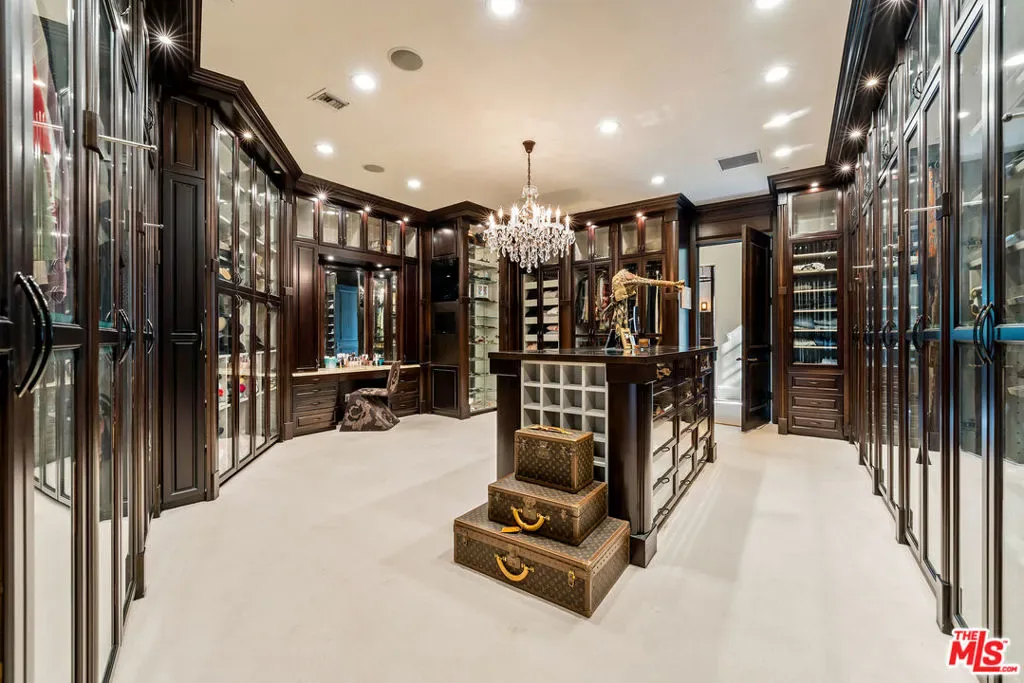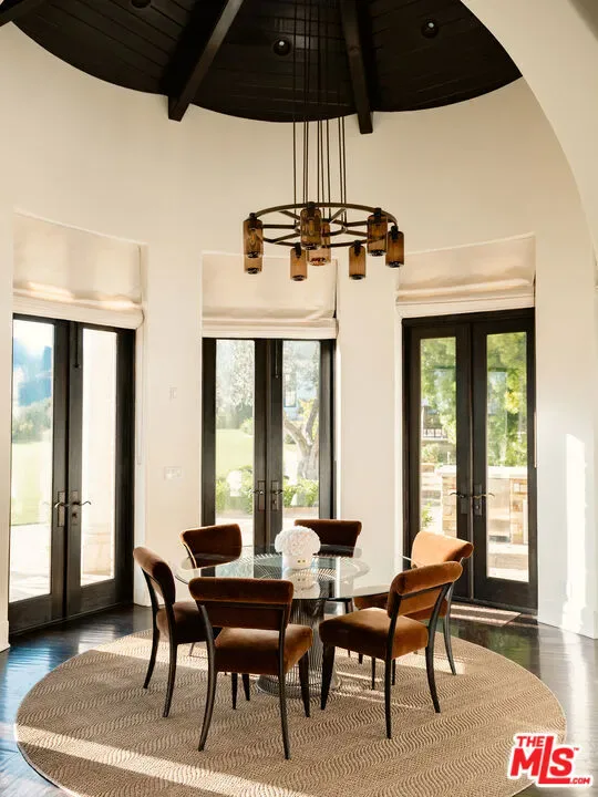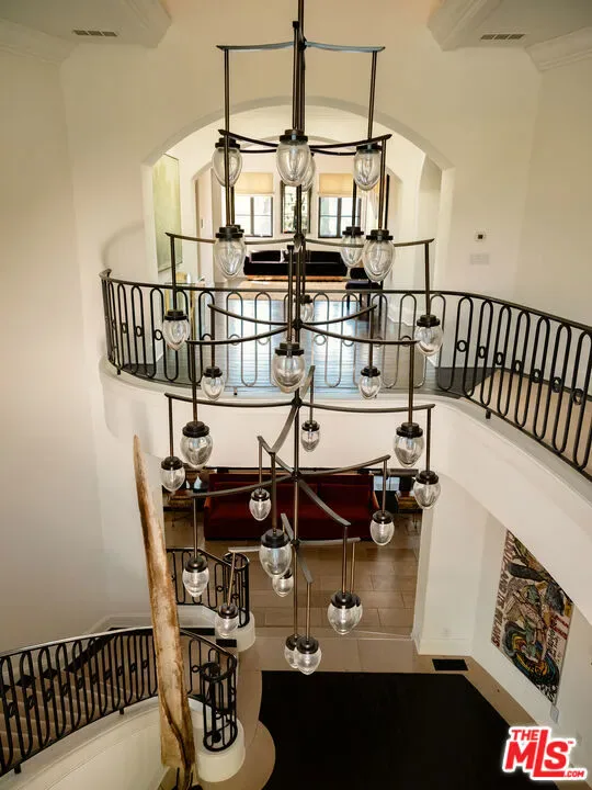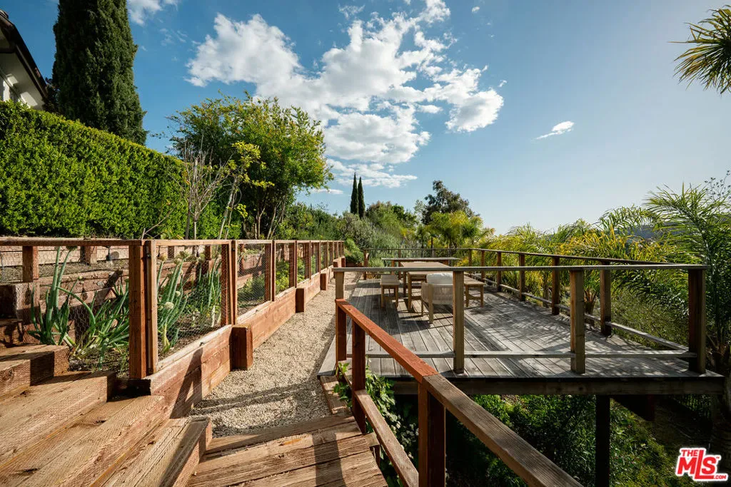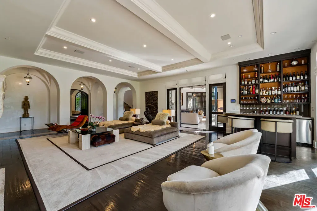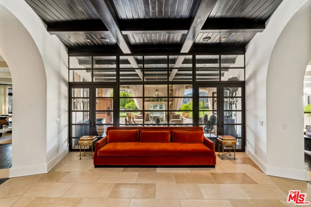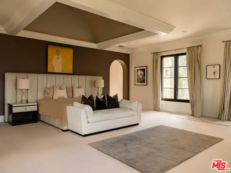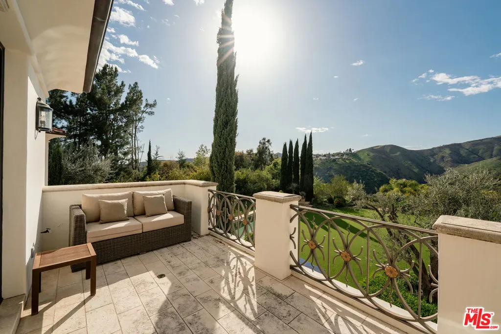 For those who seek extra privacy and security, this sprawling Tuscan residence is positioned on nearly two-and-a-half acres of pristine, manicured grounds at the end of a cul-de-sac in ultra-exclusive Brentwood Country Estates, guard-gated with 24-hour patrol. Guests arrive through a large iron gate and into a massive motor court, its perimeter lined with privacy hedges beneath towering palms and Mediterranean cypress. Enjoy striking panoramas of vivid green hills, canyons, and untouched mountains beyond. A lighted north-south tennis/pickleball court includes a trellis-covered viewing pavilion, basketball hoop, equipment storage shed, and a freestanding wellness gym for meditation, yoga, and fitness. Inside, a double-height foyer is characterized by a grand staircase and rich wood floors that flow into the public entertaining spaces. Host intimate gatherings in the family room, complete with fireplace and wet bar, or have tea in the formal living room, each space connected by a series of romantic archways overhead. The chic formal dining room connects to the kitchen via a butler’s pantry, perfect for catering. Fit for a true gourmand, there are two islands with farm sink, state-of-the-art appliances including double Sub-Zero refrigerator, and chef-grade range with pot filler. There is also a sun-filled breakfast rotunda with multiple sets of French doors to the outside, creating an effortless indoor-outdoor flow for al-fresco living and dining. Upstairs, a sumptuous owner’s wing contains a resort-inspired primary bedroom suite complete with fireplace, parlor, two large boutique-style closets, and a spa-inspired bath with floating dual-sink vanity, separate soaking tub, oversized rainwater shower, and toilet room. Secondary en-suite bedrooms are spacious and include private balconies and patios. There is also a theatre/media room for gaming and screening films, an office for work and study, and massage/spa room. At the center of the residence is an outdoor living room with double-sided fireplace flanked by dramatic archways. Additional outdoor amenities include a putting green, pool, spa, sundeck, organic vegetable and rose gardens, built-in barbecue, pathway to delightful garden swings, and numerous patios and terraces throughout. There is even a dog house with dedicated play space! Welcome to an extraordinary life of peace and comfort in a coveted guard-gated community in Lower Mandeville Canyon with 24-hour patrol, just moments to Brentwood’s fine restaurants, Santa Monica’s cafes and shops, world-famous beaches, and all the Westside provides.