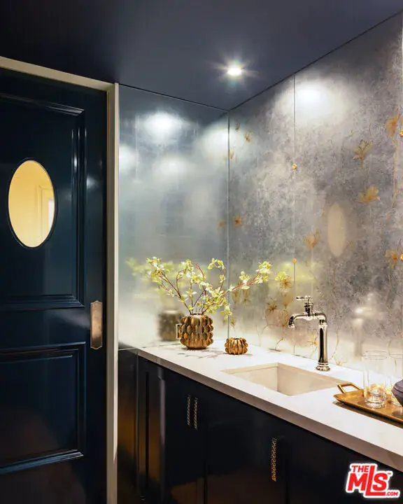 Behind the gates of a private cobblestone motor court in the heart of Brentwood Park stands The House of Hanover. Timeless European architecture reimagined through a contemporary lens this is the result of a three-year collaboration between AY Architects, Rattigan Construction, and Coppel Design. Spanning nearly 12,000 square feet entirely above grade, the residence reflects uncompromising craftsmanship at every turn. Dramatic ceiling heights and voluminous interiors unfold through a sequence of elegant spaces framed by arched passages, wide-plank wood floors, and black steel windows and doors accented with Nanz New York hardware. The Italian chef’s kitchen crafted by Officine Gullo Firenze is a statement in precision and beauty, showcasing hand-finished stainless steel cabinetry, an eight-burner range, and Gaggenau dual ovens and refrigeration. Formal and informal living rooms, a pub lounge, game room, library and dining salon together create a seamless flow ideal for both grand entertaining and intimate living. Upstairs, five generous en suite bedrooms reveal an artful interplay of pattern and stone, featuring House of Hackney wall coverings and exquisite natural marbles. The primary suite is a private sanctuary with dual baths clad in Norwegian Rose marble and custom walk-in dressing rooms, each designed with couture-level detail. Beyond the main residence, the grounds evoke a private resort with a resort-sized pool with Badu swim jet, lighted tennis court and a spectacular entertainer’s pavilion complete with raised-beam ceilings and a commercial sized bar. Additional amenities include a detached professional gym with a full bathroom, state-of-the-art theater with a powder room, pool changing room with a bathroom and outdoor shower and a full outdoor kitchen with a bbq and a pizza oven. The over sized three-car garage is lined with built-in storage. Throughout, every fixture and finish tells a story of connoisseurship: lighting by Paul Ferrante, Mechini, I Borbone and Murano chandeliers, plumbing by Sherle Wagner and THG, Crestron home automation for seamless comfort and effortless lifestyle. There is a solar system, Two Tesla car chargers, a Tesla battery generator plus a backup gas generator. The House of Hanover represents the rarest form of Los Angeles luxury, a one-of-one estate of timeless character and contemporary grace.