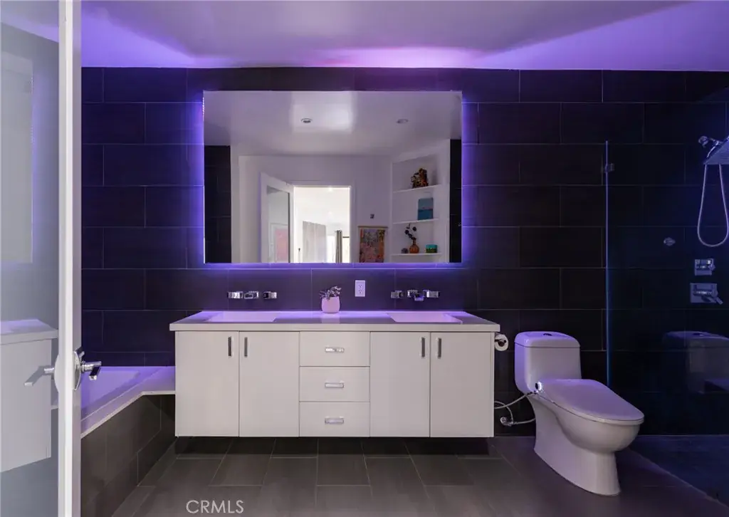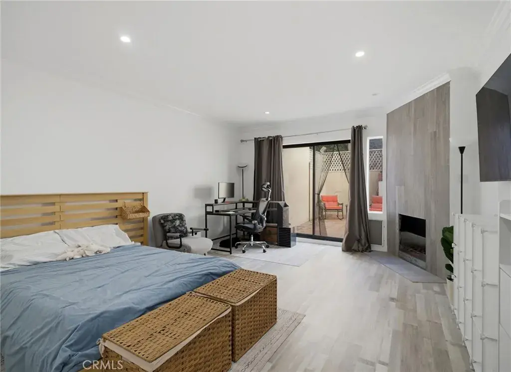 Inside, enjoy a spacious open layout with a double-door entry, fireplace, crown moldings, wet bar, and theater-quality surround sound. High-end finishes include Italian wood-look porcelain tile, quartz countertops, stainless steel appliances, quartz countertops, and dimmable recessed LED lighting. The expansive primary suite offers its own fireplace, a walk-in closet with custom built-ins, and a spa-style bath with dual sinks, dual shower, and an oversized Jacuzzi tub.