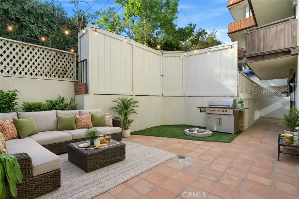 Welcome to 1277 Beverly Glen Blvd #107 — a beautifully remodeled 2BR/2BA in the prime Westwood / Century City corridor, featuring an exceptionally rare ~500 sq ft private patio that makes the home feel like an effectively 2,100+ sq ft indoor-outdoor retreat. Accessible from both the living room and primary suite, this oversized outdoor space functions like a private backyard—perfect for entertaining, dining al fresco, and pet-friendly living.