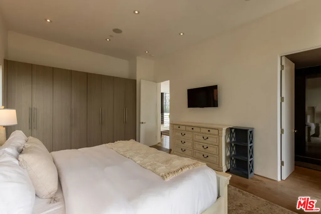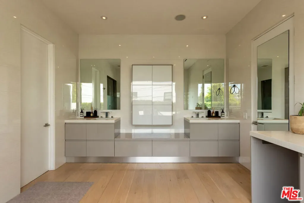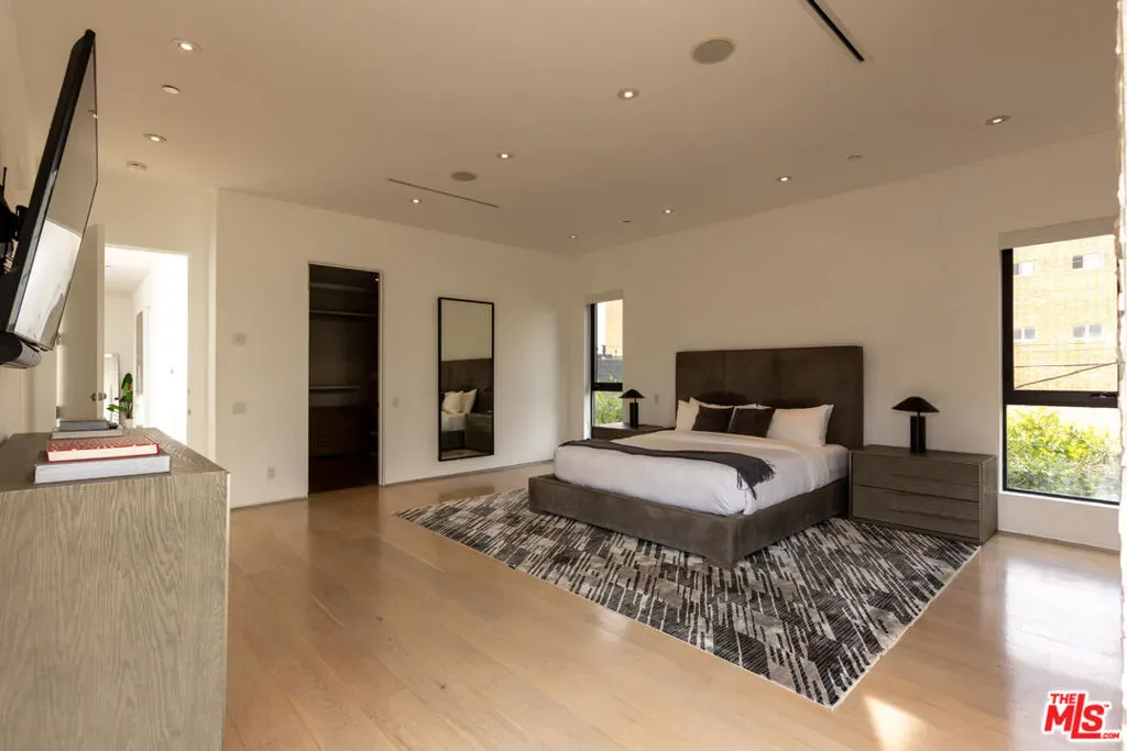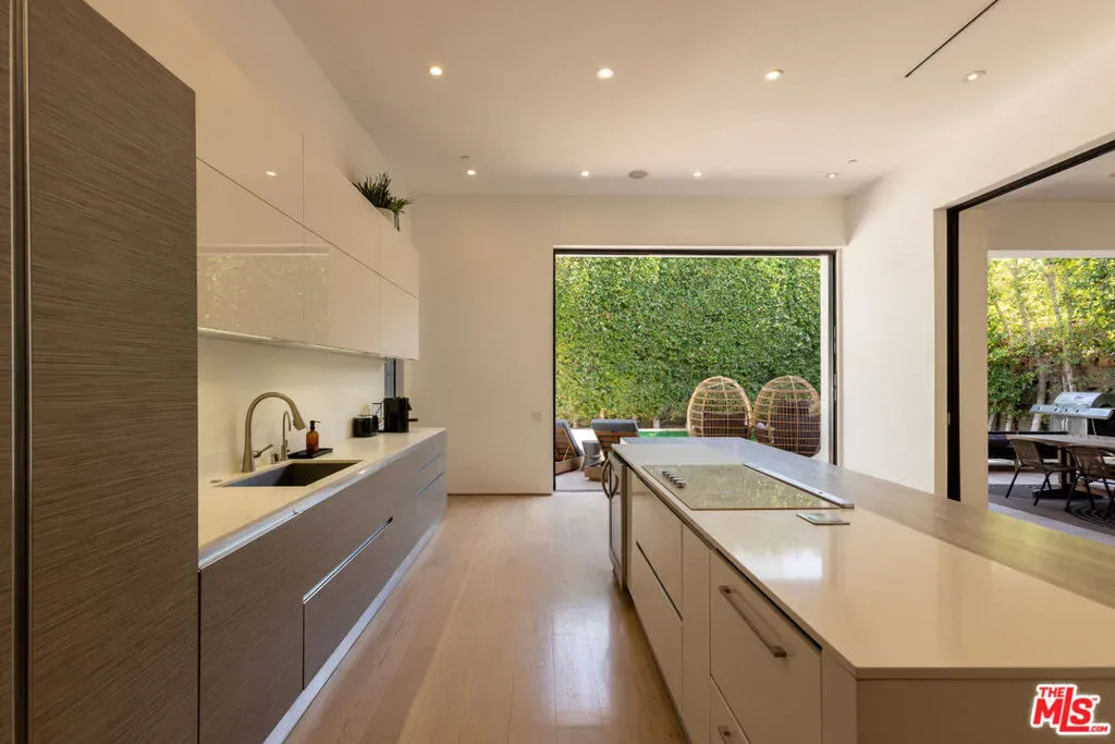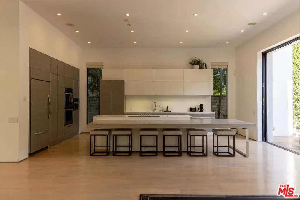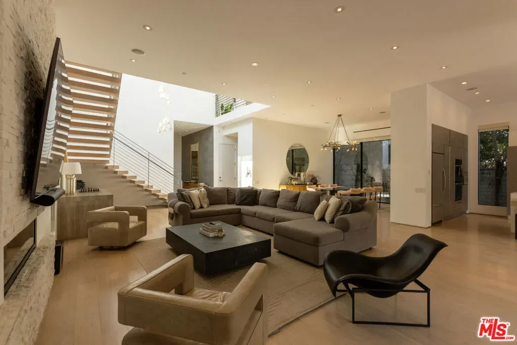Located in the heart of Beverly Grove, this modern home offers a great mix of style, comfort, and space. With about 4,000 square feet, it features 5 bedrooms and 6 bathrooms – all en suite – giving everyone plenty of privacy. Willing to sell furnished or unfurnished. Inside, you’ll find soaring ceilings and a striking floating staircase that add to the open, airy feel. The kitchen is fully equipped with high-end appliances, perfect for cooking or entertaining. The living room, complete with a fireplace, opens smoothly to the backyard, creating an easy flow between indoor and outdoor spaces. The backyard is a true retreat, with a saltwater pool, spa, mature landscaping, and plenty of room for relaxing or hosting. There’s also an outdoor fireplace and TV area that make it a great spot to unwind with friends or family. The master suite stands out with its own fireplace, walk-in closet, sundeck, and a luxurious bathroom with Porcelanosa finishes. The home is also outfitted with smart technology and solar panels for energy efficiency. This gated property offers both privacy and convenience, just minutes from The Grove and the Sunset Strip – some of LA’s best dining, shopping, and entertainment. If you want a stylish, comfortable home with plenty of room to live and entertain, 132 N Laurel Ave is a wonderful choice.