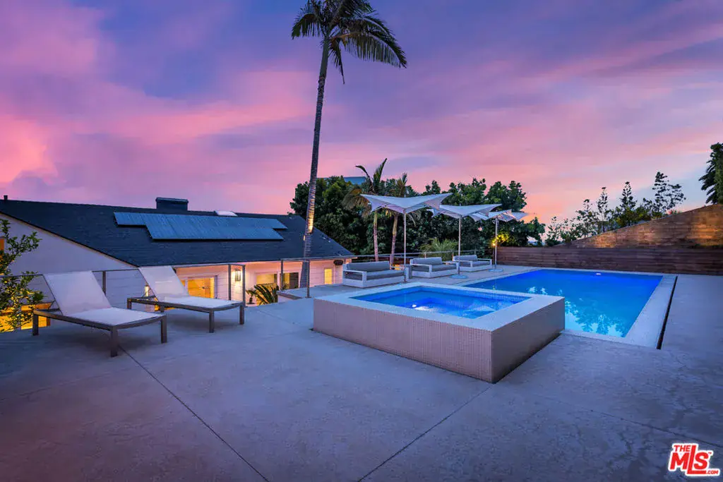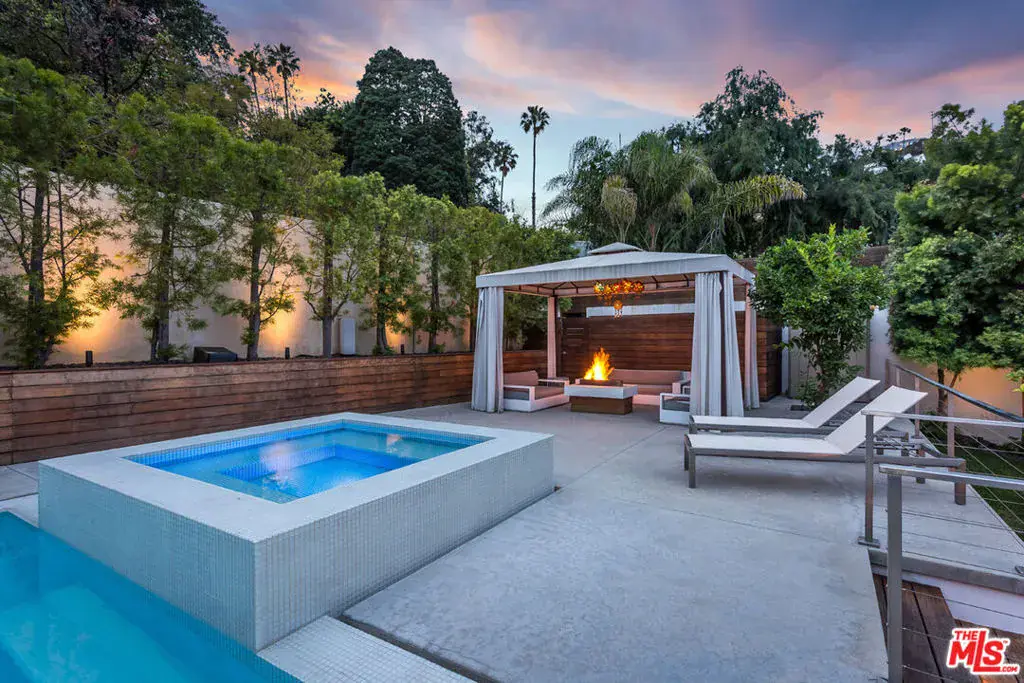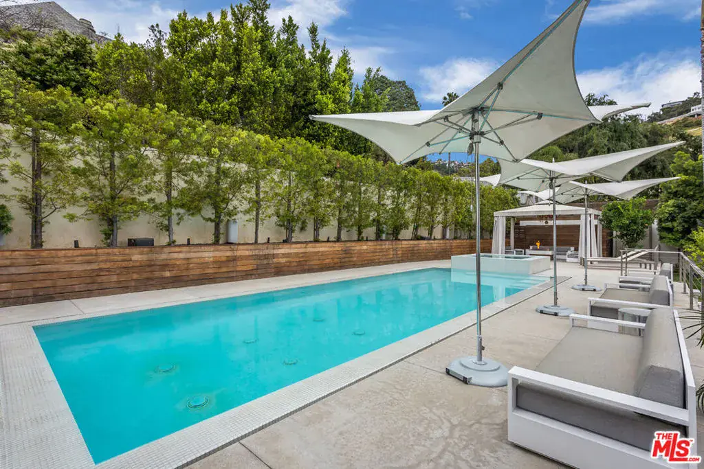 Available immediately. Fully furnished and fully stocked move-in ready. Short- or mid-term lease considered at a premium. This modern smart home delivers a true private resort experience in the heart of the city. Designed for both comfort and entertaining, the property features a dramatic waterfall, expansive salt-water infinity pool, oversized 8-person jacuzzi, lounging cabana, multi-level outdoor spaces, multiple exterior fireplaces, and a full outdoor kitchen with Sub-Zero appliances. Tropical landscaping, high-end outdoor furnishings, and sweeping city views complete this exceptional oasis. Inside, the home offers three bedrooms, each with a private en-suite bath. The oversized primary suite is a true spa retreat, featuring a full luxury bath with rain and steam shower, and a large jacuzzi tub for two. All bathrooms are appointed with high-end Toto electronic toilets, modern custom cabinetry, and Grohe fixtures. Additional highlights include multiple fireplaces inside, a game room with professional Olhausen pool table, piano, audiophile-grade reference surround-sound home theater in the living room, and multi-room audio throughout. A two-car climate-controlled garage adds convenience and functionality. A truly unique offering a resort-style sanctuary just moments from Sunset Blvd., world-class dining, nightlife, and entertainment. An oasis that must be seen to be fully appreciated.