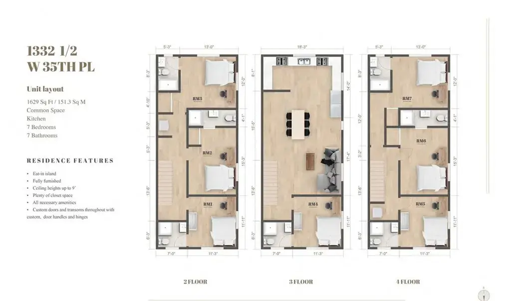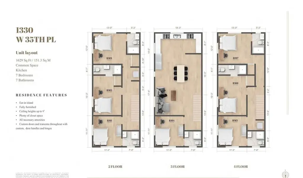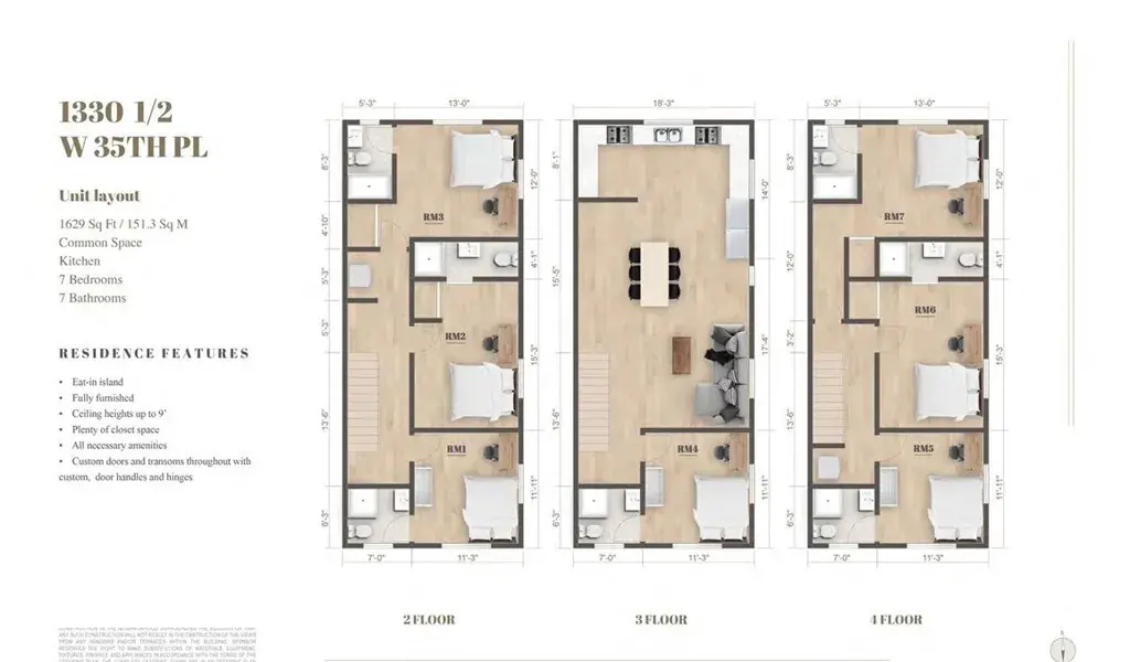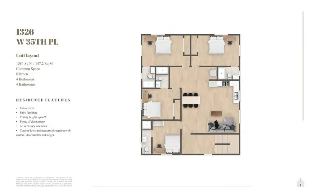 Fantastic opportunity to purchase a newly constructed 70 room student housing facility (including 4 ADUs) within a half mile proximity to USC with A+ Interior Buildouts compared to the competition, in amazing condition. The subject is a 12-unit, four-story, 2024-built co-living student housing apartment complex with a unit mix consisting of four bedroom, seven bedroom, and nine bedroom units exhibiting an average size of 1,794 square feet. It is operating as a fully furnished co-living apartment with 70 bedrooms leased individually on a per bedroom basis with a 308-square-foot average bedroom