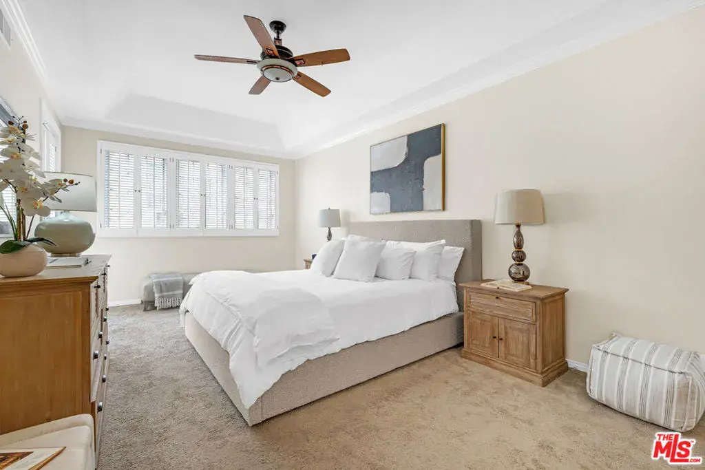 Welcome to this bright and spacious 2-bedroom, 2.5-bath condo in the heart of Westwood, just three blocks from Westwood Village and minutes from UCLA. Nestled on a picturesque tree-lined street, this elegant residence features soaring 10-foot ceilings, crown moldings, French doors, and rich hardwood floors throughout the living, dining, and hallway areas. The open living room boasts a wood-burning fireplace and opens to a covered balcony, perfect for morning coffee. The kitchen is equipped with a gas range, Silestone countertops, stainless steel appliances, and a built-in wine fridge. Additional highlights include a stunning floor-to-ceiling built-in bookcase, in-unit washer and dryer, central heat and A/C, and ample storage throughout, including a an additional storage room. The pet-friendly building offers outstanding amenities: 12 guest parking spaces, a spa, gym, sauna, and two secure tandem parking spots in a gated garage. Residents enjoy enhanced peace of mind with controlled building and elevator access, as well as earthquake and wildfire insurance.