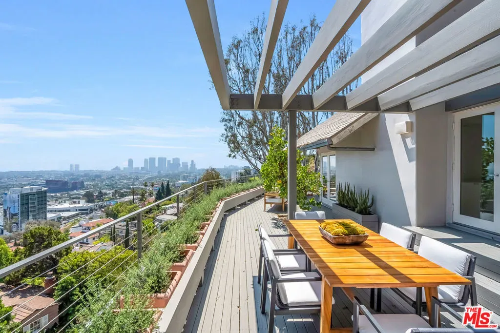 Welcome to “The Miller MCM,” a mid-century modern gem perched on a striking overlook just above the Sunset Strip. THE VIEWS ARE UNINTERRUPTED. THESE VIEWS ARE EXCEPTIONAL AND RARE. From dawn to dusk, sweeping panoramic vistas stretch from the glittering skyline of Downtown Los Angeles to Century City and the Pacific Ocean, placing the city’s most iconic views entirely at your fingertips. Bright, spacious interiors with high vaulted ceilings offer an architectural statement, blending Zen-inspired calm with mid-century modern elegance. The open kitchen, equipped with dual refrigerators and generous counter space, provides a perfect backdrop for entertaining against endless city-to-ocean panoramas. The top floor is a private master retreat, complete with expansive walk-in closets, a cozy fireplace, and a sun-drenched terrace capturing the horizon in every direction. A dedicated studio space offers a tranquil and creatively inspiring environment, ideal for yoga, meditation, or use as a home office. This is paired with a primary bathroom suite featuring a sauna, creating a sanctuary for wellness and reflection. Outside, secret garden enclaves and terraces provide privacy and serenity, while the expansive lot is perfectly oriented to frame the panoramic views and elevate the outdoor experience. “The Miller MCM” is more than a home, it’s a canvas to manifest your private peaceful retreat, combining mid-century modern elegance, architectural creativity, and the dramatic panoramas of Los Angeles.