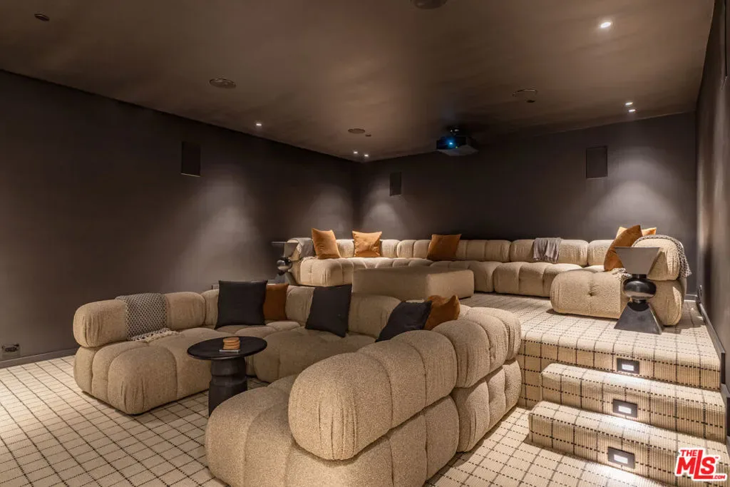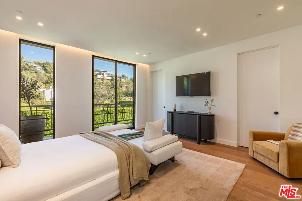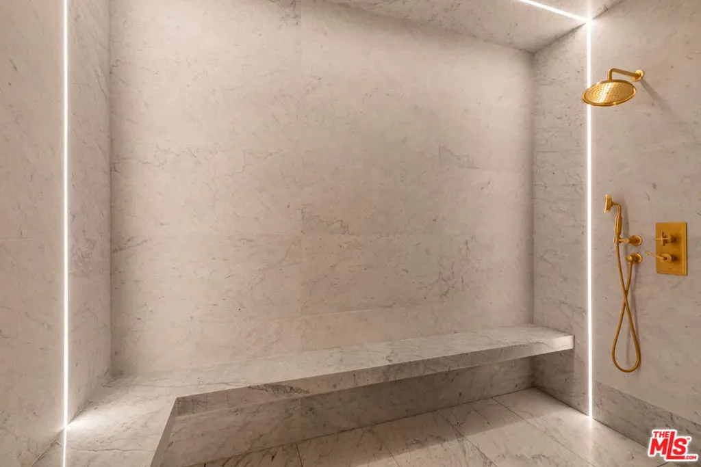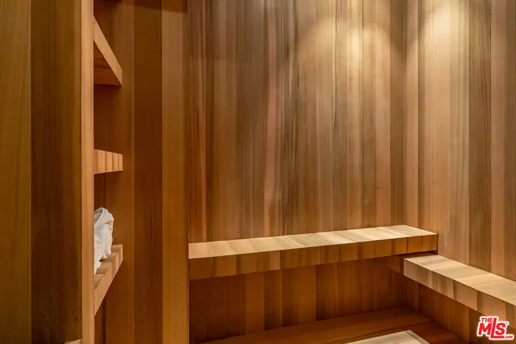 Perched above the city in one of LA’s most prestigious enclaves, 1395 N Doheny Drive is a newly constructed modern masterpiece offering the ultimate in privacy, sophistication, and luxury living across three meticulously crafted levels. Designed with a refined modern edge, the home is grounded by warm, organic materials that bring a calming, natural elegance to every space. From custom wood paneling to soft textured finishes, the design strikes the perfect balance between sleek contemporary living and inviting comfort. A dramatic spiral staircase serves as a sculptural centerpiece, seamlessly connecting the home’s three levels, while a private elevator provides effortless access throughout. The main floor features expansive open-plan living spaces with four gas fireplaces, ideal for entertaining or relaxing in style. The chef’s kitchen flows effortlessly into the dining and living areas, while walls of glass open to lush outdoor spaces. The lower level is a true wellness retreat, complete with a full spa and sauna, game room, and a custom-designed bar–perfect for both relaxation and entertainment. Upstairs, the luxurious primary suite includes a private terrace, gas fireplace, and spa-inspired bath, all overlooking the serene greenery. Outside, the backyard is a secluded oasis featuring a heated pool and spa, surrounded by sun-drenched lounge areas and mature landscaping for total privacy. On the rooftop terrace, take in panoramic city views from a beautifully appointed lounge area–an entertainer’s dream.
