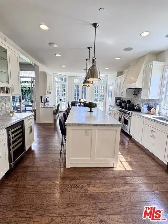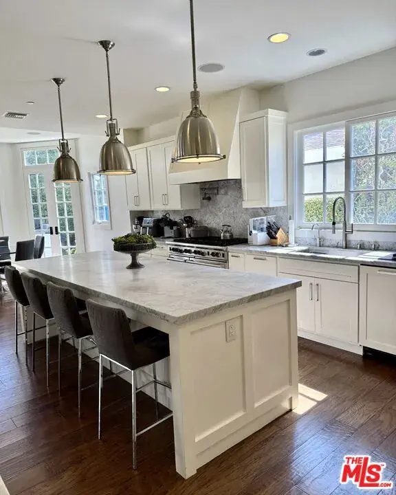 Step into unparalleled luxury and sophistication in the heart of Brentwood. This exceptional 6-bedroom, 7 bathroom home offers approx. 4,800 square feet of elegant living on an expansive 9,627 square foot lot. Every inch of this home is crafted for high-end comfort and seamless entertaining. The chef’s kitchen is a culinary masterpiece with dual gas Wolf ovens, an 8-burner stove, Sub-Zero fridge/freezer, wine fridge, and a separate pull-out drink fridge. The open-concept layout flows effortlessly into the living and dining spaces, setting the stage for both casual nights and elevated gatherings. The primary suite is a retreat in itself, featuring heated floors, a steam shower, electric blinds, and spa-inspired finishes. Three soaking tubs throughout the home add a luxurious touch to daily living. This is a fully upgraded home features AC on both levels, tankless water heater, and an EV charger in the garage. Step outside to your private entertainer’s paradise, complete with a built-in barbecue, fire pit, outdoor heaters, and a pool/spa with custom cover. Set in one of the most coveted pockets of LA, this home is just minutes from the exclusive Brentwood Country Mart. Ideally located near top-rated public and private schools, local parks, and family-friendly shops and cafes, and the best of the Westside’s dining, shopping, and lifestyle amenities. This is California living at its finest!
