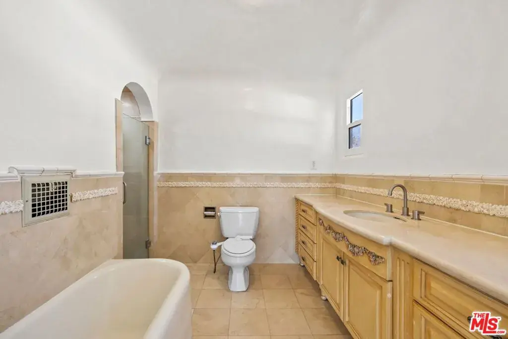 Beautifully detailed, light-filled 2-story residence offering 5 bedrooms + a den, guesthouse w 1 BD 1 BA, hardwood floors, wainscoting & more timeless character throughout. Enter the property into a foyer greeted by a magnificent stone staircase. First floor features include a formal dining room, a spacious living room with beamed ceilings, a decorative fireplace, elegant arched doorways, 1 bedroom, & a den/office. The generous kitchen features double sinks – ideal for kosher use, a stove, refrigerator, & a laundry room off the back. There is 1 bedroom downstairs & 4 upstairs. The primary suite includes an en-suite bath with a separate tub & shower & 2 closets. 2 of the bedrooms upstairs share a jack & jill bath. The guesthouse in the back provides extra privacy with 1 BD, 1 BA, & kitchen. The spacious, private backyard is perfect for relaxing or entertaining. This home is ideally located near The Grove & Pan Pacific Park.