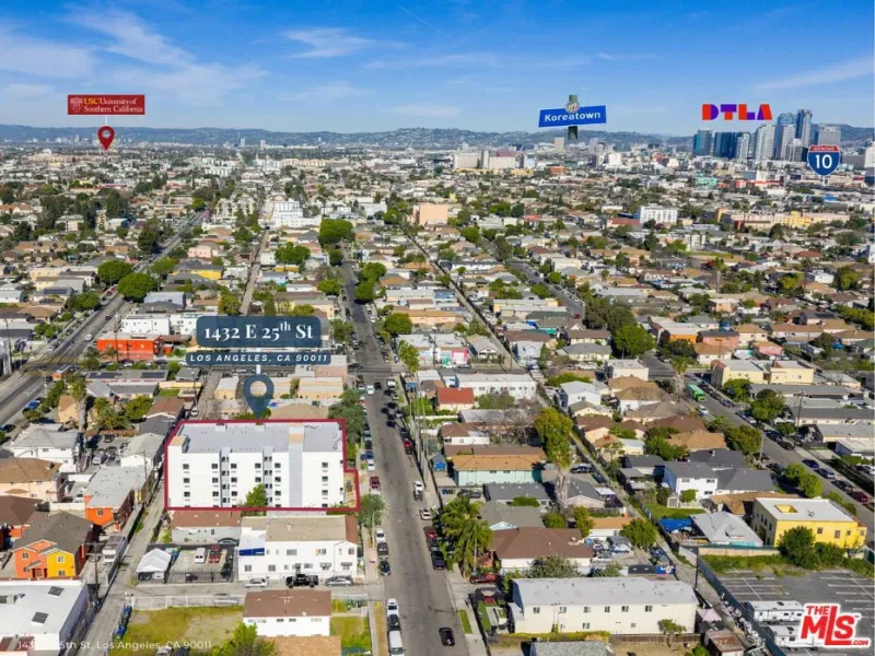 We are pleased to present 1432 E 25th St, a brand new construction multifamily opportunity situated on the southern doorstep of Downtown Los Angeles in the Central-Alameda neighborhood. Expected to deliver by end of Q2 2026, the building will consist of 55 units with an efficient mix of 6 studios and 49 one-bedroom units, purpose-built for the workforce renter. The asset is being delivered below replacement cost and at a basis comparable to what vintage RSO product is currently trading for in the submarket, giving portfolio operators a rare opportunity to upgrade their vintage portfolio into brand new construction. The property will be delivered vacant at close of escrow, providing investors complete operational control and the ability to implement their own lease-up strategy from day one. Vacant delivery also creates a compelling opportunity for mission-driven housing operators to populate the building with the demographic groups they serve, including workforce, affordable, or supportive housing residents, without the need for tenant displacement. The property features a 4,400 SF communal roof deck offering unobstructed views of Downtown LA, designed as a true community gathering space for residents to host events, socialize, and connect. Located just south of DTLA with a walk score of 77, the property sits within easy commute distance to Downtown LA and Angeles Vernon, with walking distance to multiple Metro local lines and the Metro A rail line. Strategically positioned minutes from Downtown Los Angeles, residents benefit from proximity to major employers across finance, healthcare, tech, government, and education, making this an ideal workforce housing rental play for operators targeting the DTLA-adjacent renter pool. The asset also benefits from easy freeway access, proximity to public transit, local retail, and everyday amenities along major commercial corridors.