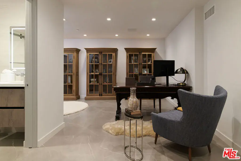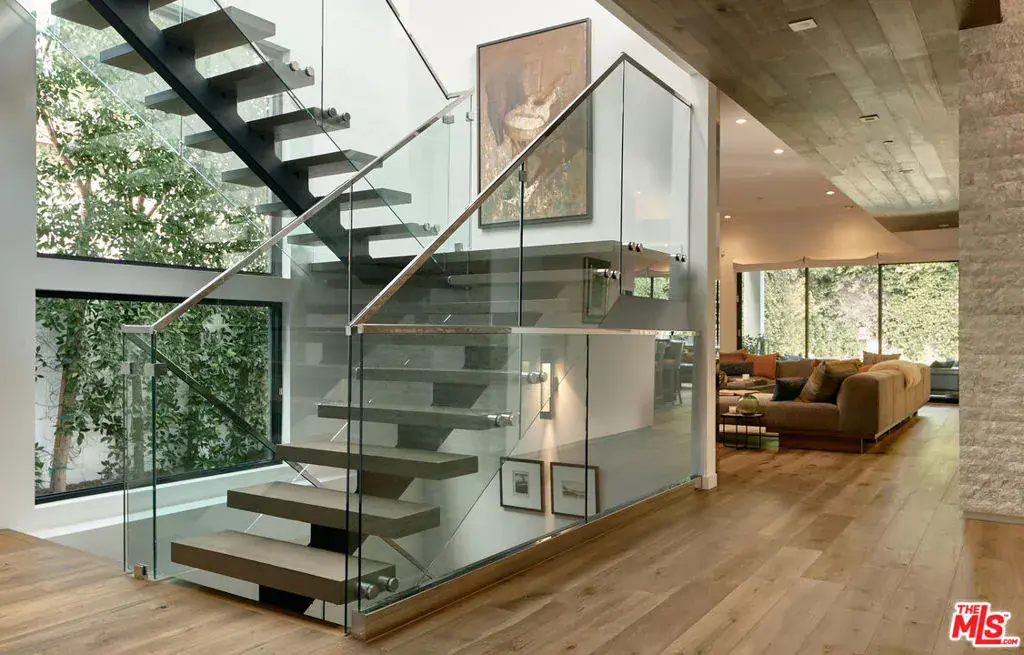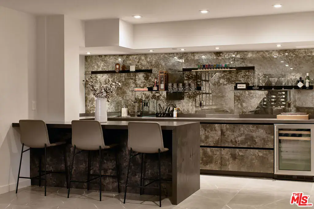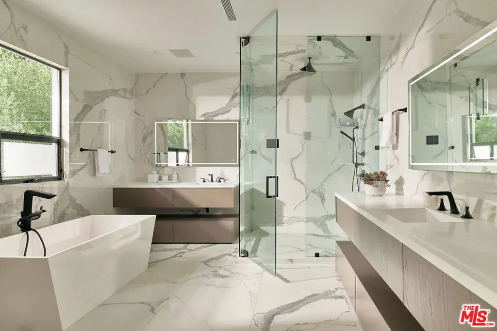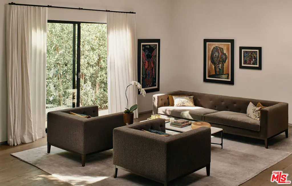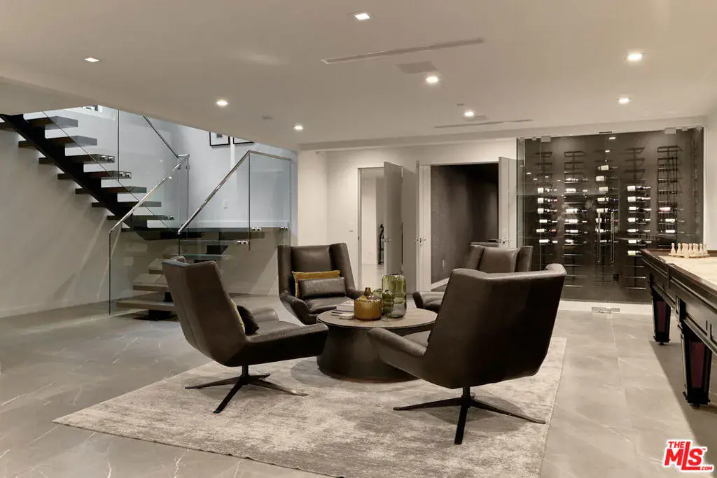 Ideally situated in prime Brentwood and thoughtfully tucked away, this newer-construction estate offers a rare blend of elegance, sophistication, and privacy, providing a serene setting that feels worlds apart despite its central location. A dramatic entry sets the stage for the 6-bedroom, 7-bath residence, where soaring ceilings, an abundance of natural light, and sleek lines are softened by carefully curated finishes. Designer-done throughout, the open-concept floor plan is both modern and inviting, framed by Fleetwood sliding doors that epitomize Southern California’s seamless indoor-outdoor lifestyle. The gourmet chef’s kitchen is masterfully appointed with Miele appliances and an oversized island, opening to a more intimate living area that flows effortlessly to the backyard. This private outdoor oasis is fully hedged and landscaped for complete seclusion, with a heated pool and spa surrounded by lush greenery, an idyllic retreat for entertaining or relaxation. A personal elevator services all three levels. Upstairs, three spacious en-suite bedrooms complement the primary retreat, a sanctuary featuring a fireplace, spa-like bath with soaking tub and steam shower, a custom walk-in closet, and an oversized private terrace overlooking the garden, perfect for morning coffee or evening sunsets. The lower level is designed for elevated living and entertainment, complete with a state-of-the-art home theater, wine closet, full bar, and gym. Meticulously built and thoughtfully styled, this residence embodies the best of both worlds: dramatic modern design, warmed by elegant details, and private, peaceful living just moments from the Brentwood Country Mart, fine dining, boutique shopping, and all the Westside has to offer.