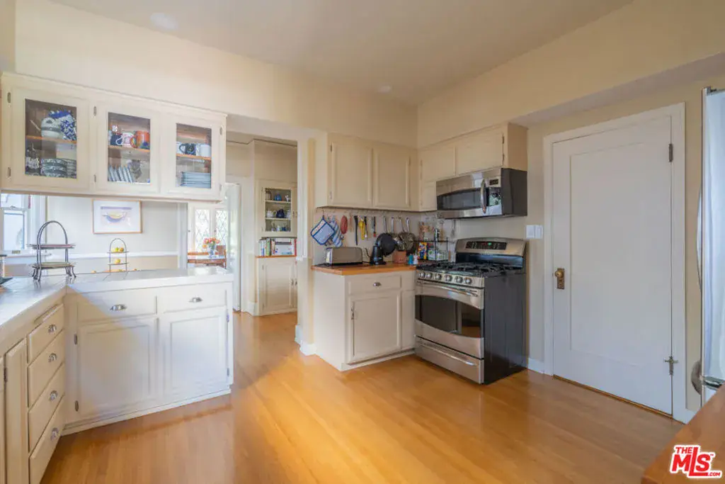 Character abounds in this lovely Windsor Square Country English with a classic center hall floor plan. The spacious living room boasts a fireplace and leaded windows. An adjacent cozy family room with French doors leads to a charming, covered patio. The formal dining room with leaded windows is accessed by pocket doors off the entry. The bright and airy kitchen is equipped with newer appliances, a butler’s pantry and an inviting breakfast nook. Also, downstairs there is 1 bedroom and 1.5 baths. Upstairs is a landing with built-in bookcases, 4 bedrooms and 2 updated baths. Hardwood floors throughout. Guest house above garage with kitchen and bath. Generous backyard with a pickle ball court and raised beds for your vegetable and herb garden. Plus, a drought tolerant front yard and EV charger. Enjoy Robert Burns Park and Larchmont Village’s farmers markets, cafes, shops and yoga studio just a few tree lined streets away.