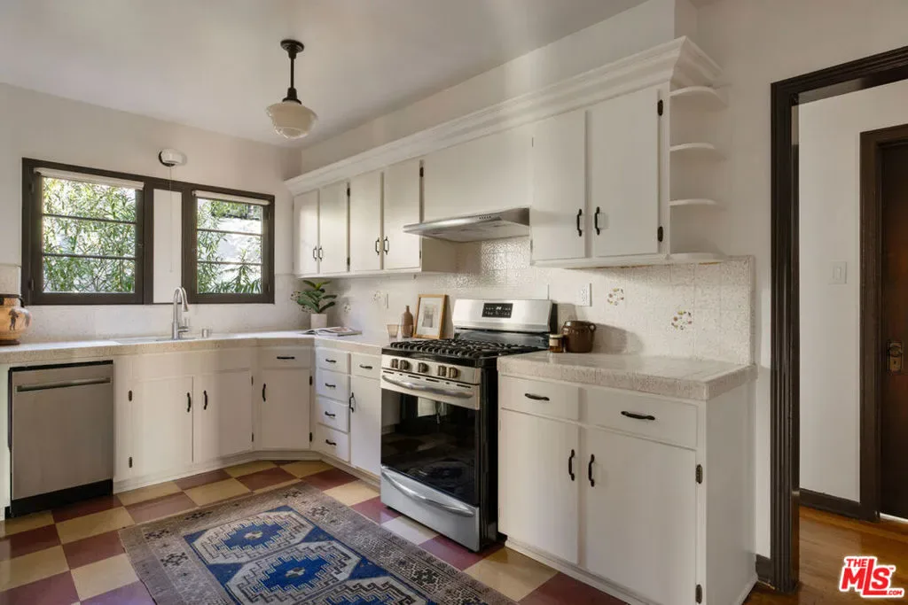 Tucked away from the street in prime Eagle Rock, this handsome Spanish is a study in period charm. The interior is stunning: golden light reflected in wood floors, a soaring beamed ceiling, and a stately fireplace anchoring the spacious living and dining areas. The adjacent library features elegant built-ins and one more fireplace. The kitchen and pantry maintain the period feel with white cabinetry, and there is a cozy breakfast nook. Three bedrooms include a primary wrapped with windows; the bathroom channels a vintage spirit, and the bonus room with a separate entrance is perfect for an office or guests.The outdoor spaces are magical: a terraced backyard with patios to lounge and enjoy sunset views, plus a front patio set beneath lush foliage. Amenities include central AC/Heat, laundry, and parking. Well-situated within the coveted Dahlia Heights Elementary boundary, you’re moments from Capri Club, Little Beast, Cindy’s, and the rest of NELA favorites.
