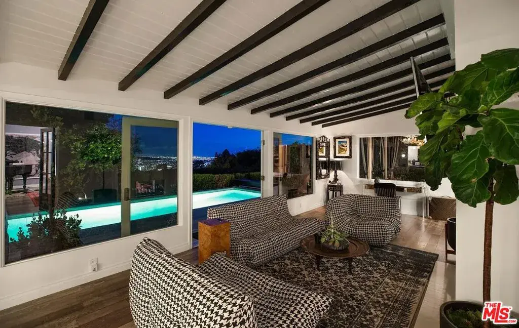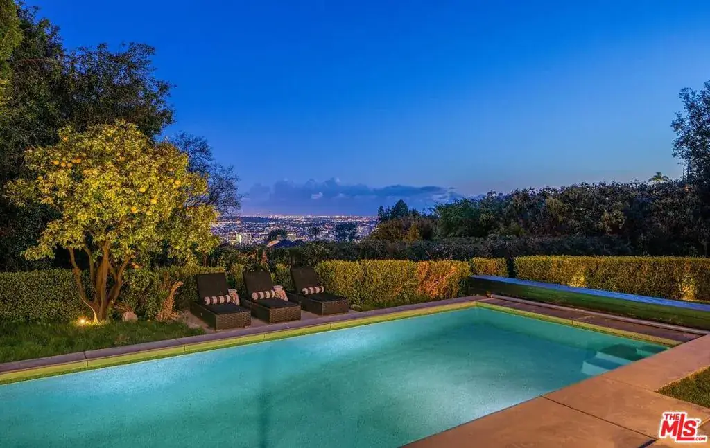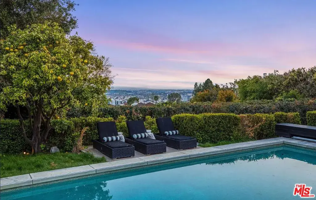 Available fully furnished and turnkey for short or long-term rentals! Tucked off Sunset Plaza down a semi-private lane with access from a quiet side street that provides a secluded entry and extra parking this gated 1920s Spanish home captures sweeping city-light views. Recently upgraded with a new central HVAC system, the property offers three bedrooms and three bathrooms in the main house plus an attached 1-bed/1-bath guest suite by the pool, totaling four bedrooms. The living room features impressive volume, a dual-sided fireplace, and doors that open to an enclosed veranda for effortless indoor outdoor living. The formal dining room flows to a covered patio with lava-stone flooring. A chef’s kitchen showcases Valcucine cabinetry, integrated refrigeration, and a bright breakfast area. The primary suite includes a private balcony overlooking the city, while the additional bedrooms each have updated ensuite baths. Outside, enjoy lush gardens with a grassy area, a resort-style pool and spa, an outdoor pool shower plus a second outdoor shower, and a ping-pong table. Pets (dogs/cats) welcome. The home includes AC, pool, city views, and curated designer furnishings and art throughout.