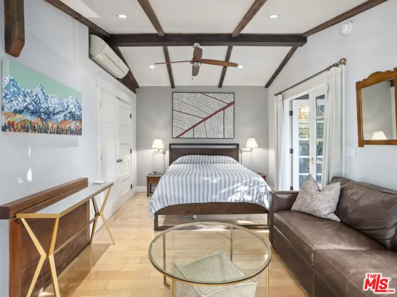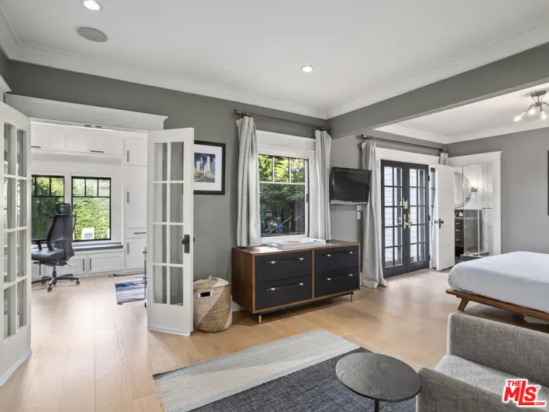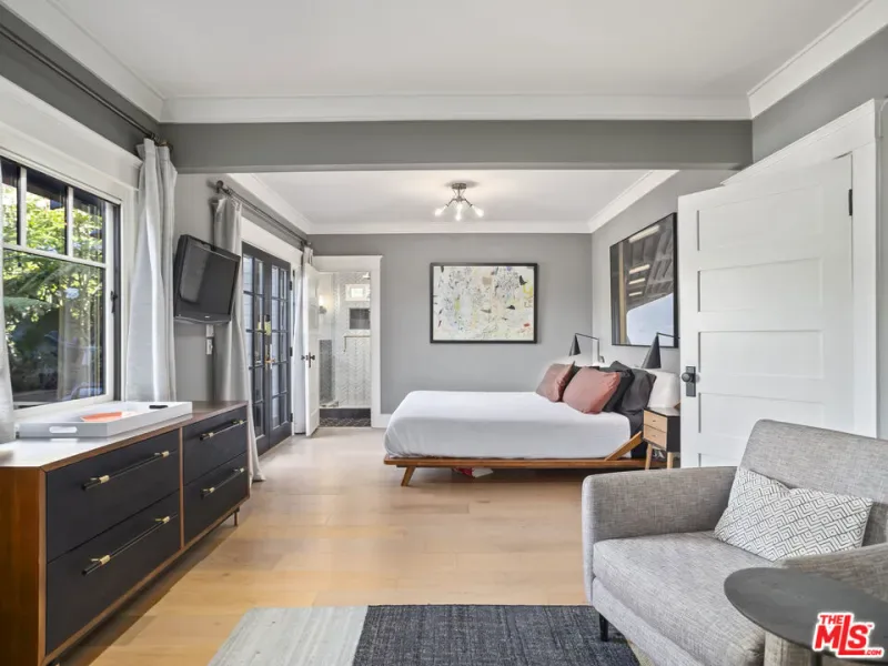 Welcome to Sunset Square, one of Los Angeles’ most sought after neighborhoods, just moments from the largest off leash dog park in California. Located north of Sunset on a prime street, this beautifully remodeled Craftsman offers three bedrooms and four bathrooms and includes a fully permitted 413 square foot guest house ADU on an expansive 7,000 square foot lot. Offering 2,437 square feet of meticulously designed living space, the home blends stunning original details, including three fireplaces, crown molding, wainscoting, and restored windows, with sophisticated updates by acclaimed designer Matthew Lanphier. A spacious library and adjoining sunroom provide flexible living options, ideal as a third bedroom or creative studio. The designer kitchen features premium finishes and ample workspace, while the reimagined primary suite boasts a spa like bath with heated floors. The professionally landscaped backyard feels like a private resort, complete with a sparkling pool, raised spa, outdoor shower, and multiple lounge areas, perfect for relaxing or entertaining. The detached fully permitted guest house includes its own kitchen, bathroom with heated floors, and in unit laundry, making it ideal for guests, rental income, or a private workspace.Located in historic Sunset Square, just moments from luxury cafes, Bristol Farms, fine dining, and vibrant nightlife, this rare blend of charm, privacy, and modern convenience is truly a standout opportunity.