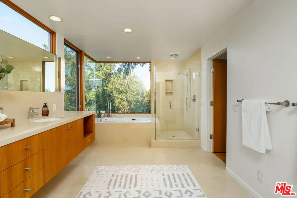 Not often does a home come to market that meets the demands of exceptional discerning buyers, this is the exception. Welcome to 1530 Bel Air Road, where Art meets Architecture. Designed and immaculately maintained with every minute detail thoughtfully considered and executed. Floating above the street, offering privacy and security with a completely gated property, this entertainer’s paradise has expansive views of the Bel Air canyons, all the way to the snowcapped mountains. The vibe of the entire home is designed to maximize the jaw dropping views of the Bel Air canyons and hills. This incredible home offers a retreat from the hustle and bustle of Los Angeles. There is an exquisite and beautifully manicured yard with colorful flowering gardens, magnificent trees, and a sparkling sunny swimmer’s pool and spa. This stunning two-story architectural oasis provides the best of all living opportunities. The living room, dining and Chef’s kitchen with center island offer a generous open living space unequaled in quality, comfort and sophistication. High ceilings, warm modern Douglas Fir windows & doors, real hardwood floors, a floating architectural wood, glass and steel staircase, a timeless stacked stone fireplace & brilliantly orchestrated walls of glass all blend together seamlessly to create an architectural masterpiece, where interior design and the stunning natural environment become one. The private primary suite is on the first floor and enjoys recessed lighting, an artisan crafted bluestone fireplace, plus both a private meditation patio and glass windows and doors opening to the one-of-a-kind view and garden. The primary bathroom includes a separate tub overlooking the gardens through a mitered corner window, double vanity, separate large shower and walk-in closet . There are two additional bedroom suites on the second floor. One of the bedrooms is currently designed as a luxury office with custom built-in cabinetry, an ample terrace and a truly dramatic 12′ wall of glass providing an unbelievable melding of indoor comfort and outdoor landscaped beauty. This exceptional work space makes working from home a pleasure you won’t want to leave. The additional bedroom suite features an entire wall of floor to ceiling glass framed in Douglas Fir, including a French door to the small terrace, and clearstory windows over the bed, allowing the sunshine to stream in at all times of the day. Descending to the private terraced wonderland at the rear of the property, one can co-habitat with peaceful lush landscaping, cascading entertainment spaces framed in beautiful masonry, quiet hidden hideaways for meditation or yoga, and even an olive grove rarely seen in Bel Air. The direct access two-car garage features an optic glass garage door, epoxy floors, EV charger, and loads of storage. An architectural gem on a legendary, historic street, this home embodies the tranquility of its magnificent setting and provides a feeling of being far from the city bustle, yet is just five minutes from Sunset Boulevard. The home exudes serenity and luxury while providing an exceptional living space for the most discerning. Welcome home to the home of your dreams!