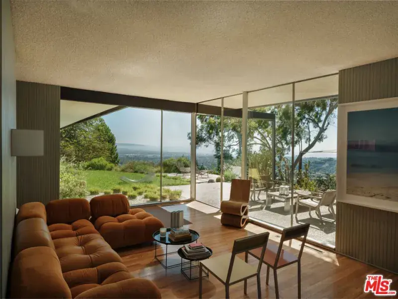 The Sale House, 1960. Designed by celebrated architect Richard Neutra, the residence stands as the crowning jewel of Brentwood’s famed Tigertail Road, perched at its highest peak. Nestled within the Crestwood Hills community, a modernist enclave of significant architecture, the home overlooks one of the finest views of the city and the Pacific Ocean. Set on just over an acre and surrounded by mature trees and reimagined landscaping by Ivette Soler Gardens, it offers complete privacy and embodies Neutra’s belief that architecture should heighten one’s relationship to nature. Sensitively restored, many of the defining details, built-in furniture, mosaic work by Elsa Sale, and even the original pool and diving board, have been preserved while integrating modern comforts with care. Equally suited for full time living or as a thoughtfully appointed pied-a-terre, this is a rare opportunity to own one of the few remaining Neutra’s on the coveted Westside of Los Angeles.