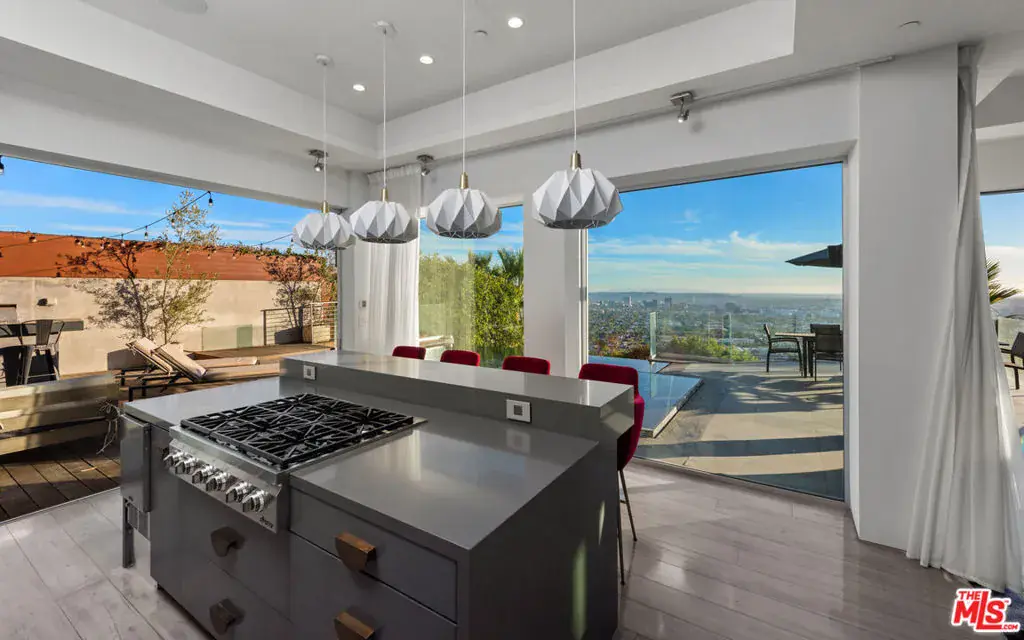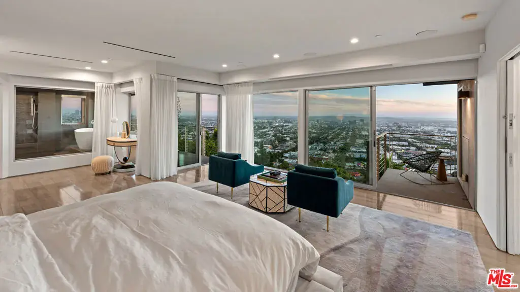 A Hollywood Hills Masterpiece with Unrivaled Views and Unmatched Luxury. Designed by Irving Philips, this architectural gem is perched on a private cul-de-sac above the iconic Chateau Marmont, offering sweeping vistas from Downtown LA to the Pacific Ocean. Seamlessly blending modern design with the natural beauty of its surroundings, this residence epitomizes California indoor-outdoor living with retractable doors, expansive terraces, and a stunning infinity-edge pool, where stunningsunsets are yours every evening from arguably the best seat in the Hills.The main level features an open-concept layout, ideal for entertaining, with a sleek outdoor kitchen,meticulously landscaped grounds, and a waterfall focal point. Upstairs, the luxurious primary suite occupies the entire top floor, complete with a captivating private balcony,spa-like bathroom, and panoramic views that redefine tranquility. Two additional en-suite bedrooms provide privacy and comfort for family or guests. State-of-the-art amenities include an iPad-controlled Smart Home system, Nest climate control, and comprehensive security. Designed for relaxation and entertainment, this property embodies Hollywood Hills glamour with every conceivable amenity at your fingertips.