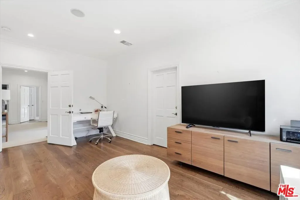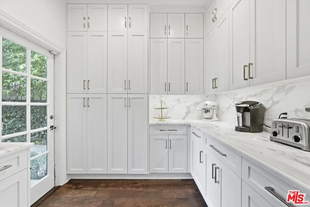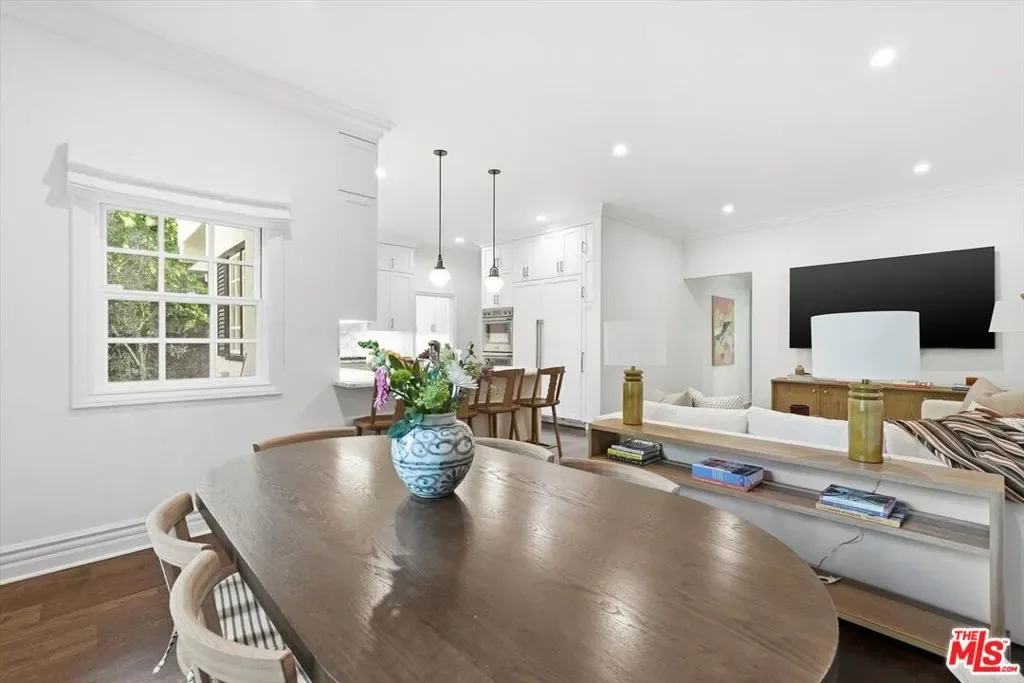 Location, Location, Location! Unbelievable opportunity to own this designer-done remodeled 2-story Traditional. The front yard greets you with lush landscaping bursting with flowers and a 100-year-old sycamore tree. The entry is light and bright with high ceilings flowing to the living room and dining room. The living room has a fireplace and a huge window overlooking the front garden. The custom dining room has built-in custom cabinetry with a built-in wine refrigerator and sink perfect for entertaining. The family room / media room has high ceilings and opens to the kitchen and also offers casual dining. The kitchen has been completely remodeled with all new appliances, new cabinets and counters. As well as a brand new HVAC and water filtration system. In addition, the added new butler’s pantry area enhances the dining room and kitchen experience. French doors from the family room open to a truly magical backyard with a pool, outdoor fireplace, outdoor theatre, dining area, lush landscaping with total privacy, and multiple entertaining areas. The ADU is brand new with a kitchenette, built-in desks, and floor-to-ceiling storage cabinets with French doors that open to the outside dining area. Upstairs are 5 rooms. The primary spans the entire front of the house with large windows and high ceilings. There’s a large sitting room that could be an office, nursery, or playroom and a large bedroom with a fireplace. The primary also features a remodeled bathroom with dual sinks, a soaking tub, a steam shower, and 2 sizable walk-in closets. Off the center hallway are 3 additional bedrooms. 2 of them are medium-sized with 1 ensuite and other shares hallway bathroom, 3rd is a junior suite with a large bedroom ensuite and a walk-in closet. This home has tons of light, high ceilings, hardwood floors throughout, a gated driveway with a covered electric awning the length of the driveway, new lush landscaping, and outdoor lighting, and is located on the best street between Sunset Blvd and San Vicente in Brentwood! There’s a private dedicated 24-hr/ 7 days a week security guard for Anita, Medio, and Carmelina. ALL wires have been put underground . Some furniture could be available for additional purchase as all is custom for the home. This home is move in ready, just bring your toothbrush!