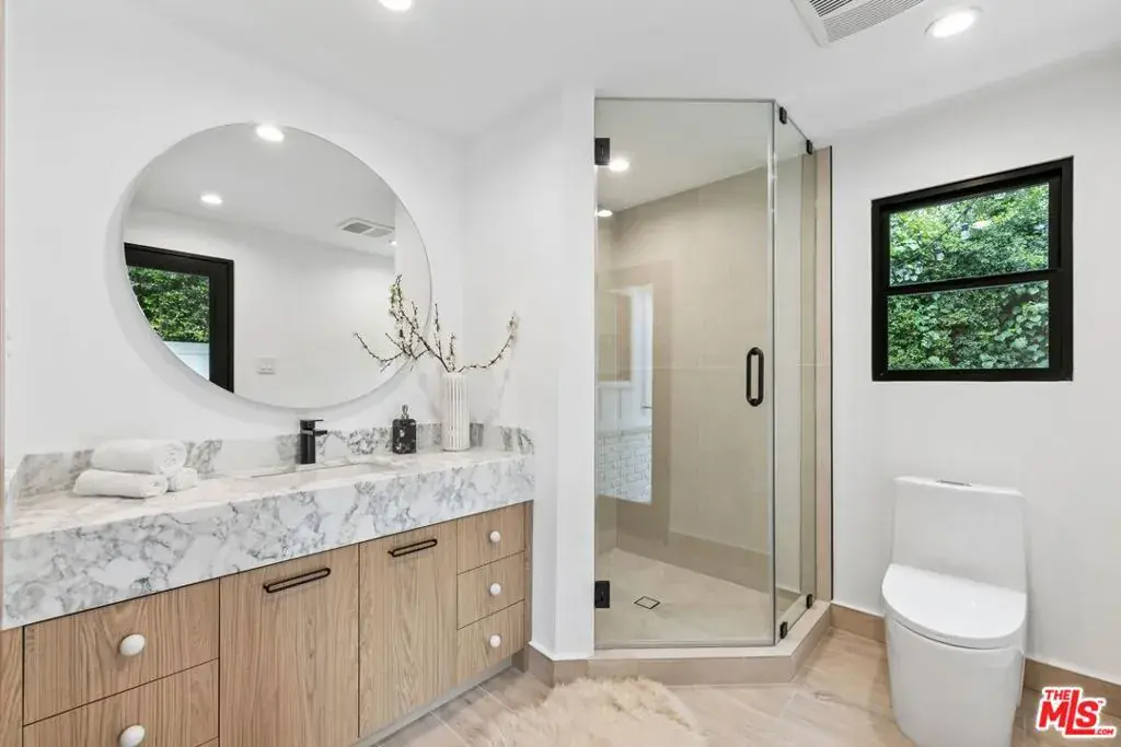 Welcome to 15415 Milldale Drive, a rare offering in the hills of Bel Air where modern elegance meets timeless comfort. This newly renovated residence has been reimagined from top to bottom with no expense spared, combining meticulous craftsmanship, designer finishes, and a thoughtful open layout that elevates everyday living. Be the first to live in this home since its complete transformation.Set on a private cul-de-sac surrounded by mature trees, the property offers both seclusion and convenience with easy access to the 405, Mulholland Drive, and everything Bel Air has to offer.Inside, expansive windows fill the home with natural light and create an effortless indoor and outdoor flow. New wide plank European oak floors, custom millwork, and sleek architectural details provide a sophisticated backdrop for both relaxation and entertaining. Two fireplaces add warmth and ambiance to the main living spaces.The kitchen is the centerpiece of the home, equipped with Thermador appliances, custom oak cabinetry, marble counters, and a dramatic 10-foot island that doubles as a gathering place. An open concept design connects seamlessly to the dining area and living room, where glass doors slide away to reveal the expansive outdoor spaces.The primary suite is a private retreat, featuring a spa inspired bath with dual vanities, a freestanding soaking tub, and a marble slab walk in shower. A boutique style walk in closet offers incredible storage and design, while a private garden connected directly to the suite creates a secluded escape ideal for morning coffee, meditation, or evening relaxation.Outdoors, the property offers a rare combination of privacy and versatility. A dramatic two story deck extends the living space, providing multiple areas for lounging, dining, and entertaining. On the second story of the deck, a dedicated wellness space has been designed for fitness and rejuvenation, currently serving as a gym, yoga and meditation studio, and private massage area.Additional bedrooms are generously sized with en suite baths, offering comfort for family and guests. A well appointed powder room serves visitors, and a flexible bonus room within the main house provides options for an office, media lounge, or creative studio. Additional highlights include brand new HVAC systems, all new doors and windows, and smart home features including Nest thermostats and Lutron lighting. An attached two car garage completes this turnkey property that combines high design, quality construction, and an unbeatable location in one of Los Angeles’ most sought after neighborhoods.