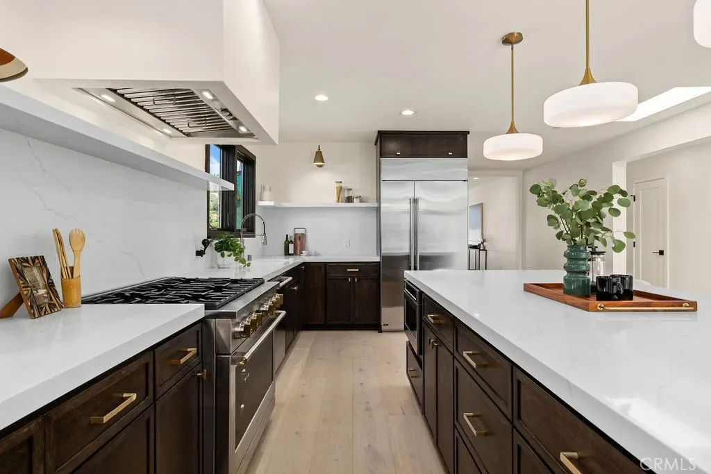 Perched above the city in vibrant Silver Lake, this Spanish?Revival has been meticulously rebuilt from the inside out, preserving the romance of its 1920s lines while delivering the comfort and precision of new construction. This 3?bed,?3?bath,?~2100?sq?ft residence pairs old-world character with modern artistry. Restored smooth-stucco façade, new bronze?/?wood-trim windows, and curated landscaping set the tone. Inside, sunlight moves through bronzed-aluminum French doors and wood-trimmed windows, warming engineered natural oak floors.