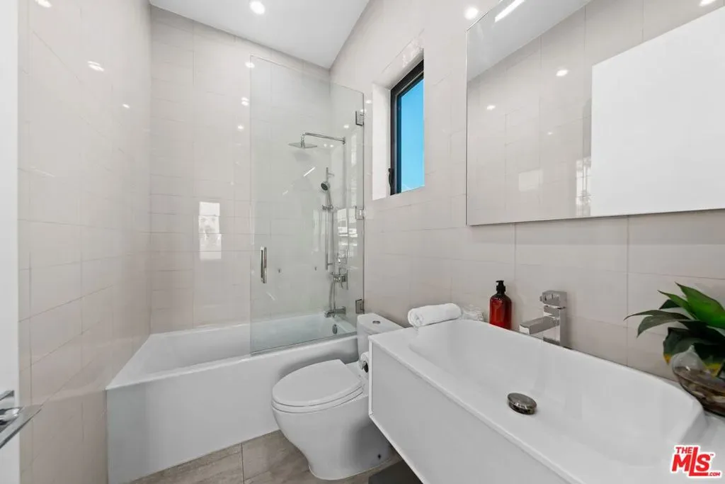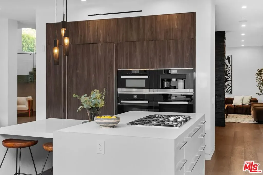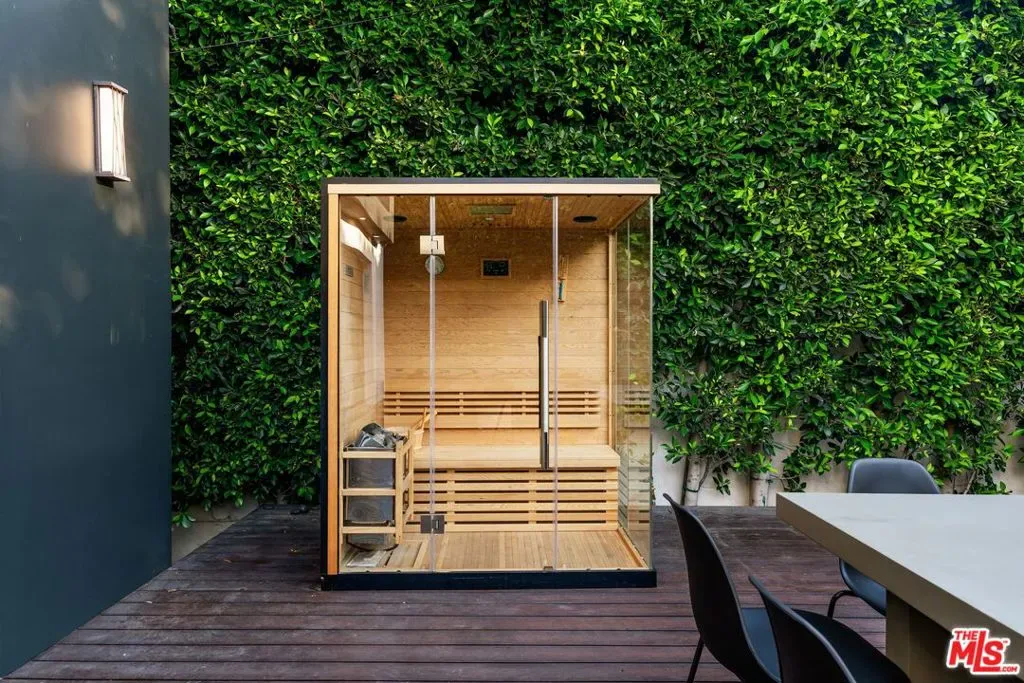 2015 Ultra High-End Construction, Private and Gated 5 bed/5.5 bath, 4,088 sq ft modern showcase home with resort style pool/spa/cabana, a 5th bedroom that has been converted into a movie theatre, and over 900 sq feet of roof deck & balcony space with spectacular 360 Degree Views all located in Iconic and tree-lined Sunset Square. Seamless indoor/outdoor living with pocket doors opening to the West-facing backyard featuring an awe inspiring outdoor oasis with a zero-edge saltwater pool and spa, complemented by a stylish cabana with its own indoor shower and bathroom. The gourmet chef’s kitchen boasts custom Italian cabinets, Miele appliances, Caesarstone counters, breakfast bar, and a built-in espresso station. An architecturally stunning floating and pendant lit staircase serves as the centerpiece of the downstairs, while hardwood floors throughout connect meticulously appointed living spaces featuring multiple fireplaces and expansive windows that flood the home with natural light. All bedrooms have en-suite bathrooms with 1 guest bedroom/office downstairs and 4 upstairs. The 5th bedroom upstairs which was converted to a screening room comes complete with screen and Dolby 7.1 audio surround sound, perfect for entertainment. The primary suite features a fireplace, large his and her walk-in closets, spa style primary bath, and west facing terrace perfect for watching the sunset. A convenient 2nd floor laundry room adds the perfect functionality, while a sprawling roof deck w/ firepit features striking views of the Hollywood Hills and downtown. Premium technology includes Control 4 smart home automation, electric pool/spa cover as well as central pool/spa temp and lighting control, electric shades, central controlled indoor and outdoor speakers, full alarm system plus security cameras, dual Heating and Air Systems, and much more! Located just minutes to the Sunset Strip and Runyon Canyon, this exceptional residence representing the pinnacle of modern luxury living truly checks all the boxes. A must see masterpiece!