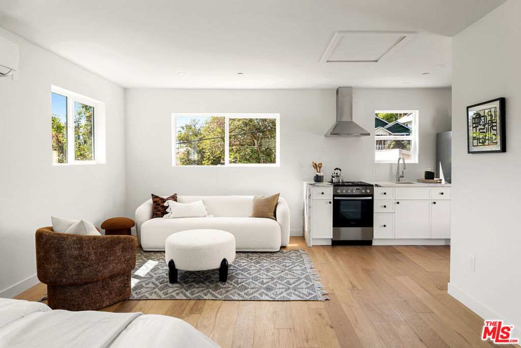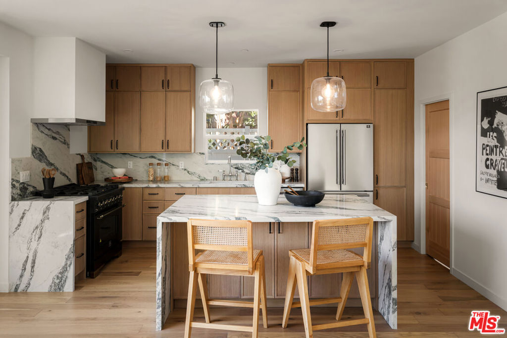 Masterfully reimagined California Craftsman in highly coveted Elysian Heights. This eye-catching home has been completely transformed through a comprehensive reconstruction and expansion to capture the timeless elegance and character of a classic residence while seamlessly incorporating a feel of new construction throughout. Voluminous ceilings create an airy atmosphere, enhancing the open yet private living spaces. A formal entry/living room set the tone upon arrival, flowing effortlessly into a light-filled dining area and family room featuring a Napoleon fireplace. Tucked away from the main living areas is an en-suite bedroom, ideal as a guest room or home office. Designed for entertaining, the kitchen features custom cabinetry and Forno appliances, including a built-in wine refrigerator. A dramatic marble waterfall island adds a striking contemporary touch to the home’s classic aesthetic. Completing the main level is a showstopping powder room with an imported Calacatta marble sink, along with a stylish mudroom/pantry. Upstairs, the tranquil primary retreat, laundry room, and two beautifully appointed en-suite bedrooms offer comfort and privacy. Vaulted ceilings and custom detailing give the primary suite a resort-like ambiance, complete with a large walk-in closet and a breathtaking bathroom featuring a clawfoot tub, dual Rejuvenation vanities, and an oversized shower. The outdoor spaces are equally impressive, with thoughtful landscaping designed to preserve old-growth trees, including mature citrus, while incorporating drought-tolerant greenery. Off the rear of the main house, a large deck leads down to a saltwater pool and hot tub, creating a true private retreat. Above the two-car garage sits a fully permitted, all-electric ADU with private alley access, offering an ideal opportunity for rental income, guests, or flexible use. Additional upgrades include engineered hardwood floors, dual-zone HVAC, custom cabinetry throughout, designer fixtures, and major system updates including sewer and electrical. Nestled in the hills of Echo Park, this gated property feels private and peaceful while remaining just moments from neighborhood favorites such as Canyon Coffee, Little Fish, Valerie Confections, and more.