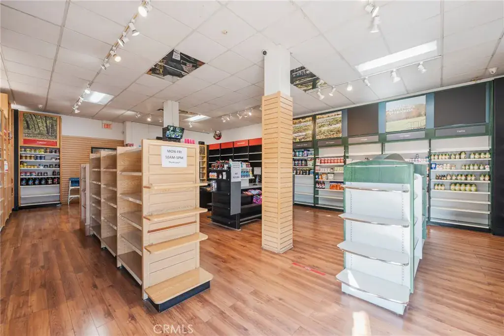 The space features an open showroom layout, two private offices, and a rare two-car garage / warehouse area, providing excellent flexibility for inventory storage, light distribution, or operational support. The existing layout allows for efficient customer flow while maintaining functional back-of-house space.