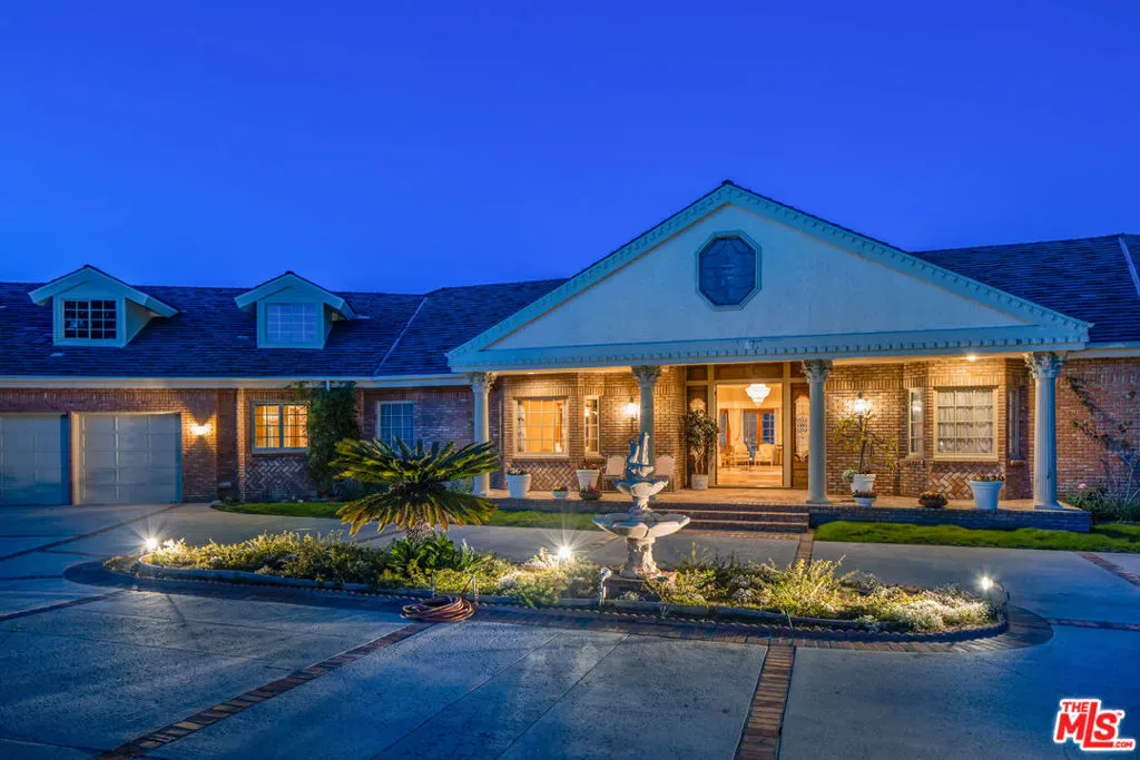 Sited discreetly beyond a gated entry, this 8-bed, 12-bath stately treasure of a home offers a rare single-story paradise designed with an eye for the utmost in tranquility and sophistication throughout. Upon entering, you are greeted by a formal living room with an elegant fireplace showcasing a detailed custom mantel. An elegant hall leads you directly into an impressive sun-soaked family room with vaulted ceilings accompanied by a custom wooden wet bar. You will find an oversized formal dining room with a crystal chandelier and windows that infuse an abundance of natural light. A gourmet kitchen with a center island is highlighted by professional-grade appliances and a breakfast nook with french doors that open to the outdoor oasis featuring, landscaped gardens, a pool/spa with breathtaking views overlooking the entire valley, tennis court, and a 4,151 sqft detached guest house. Conveniently close to top-rated schools, world-class dining and entertainment. This is the perfect home for the California lifestyle.