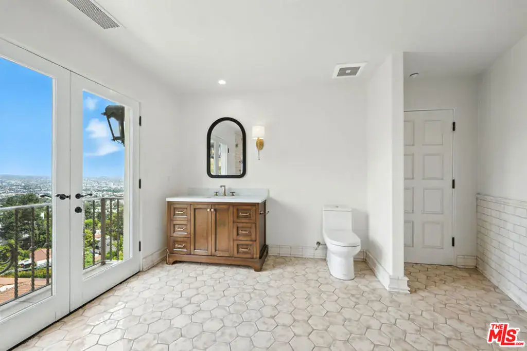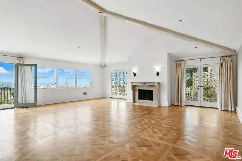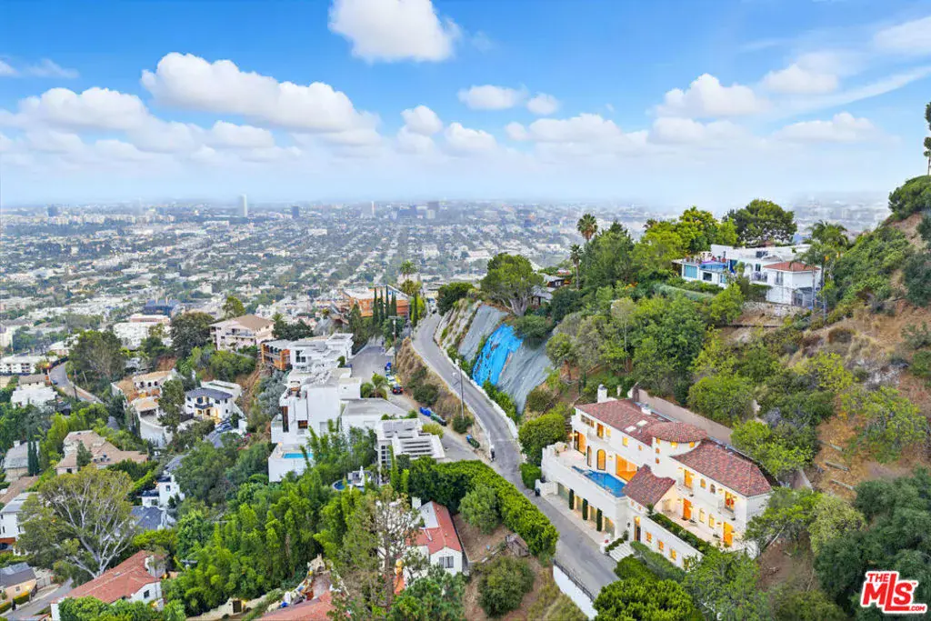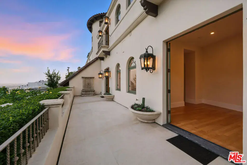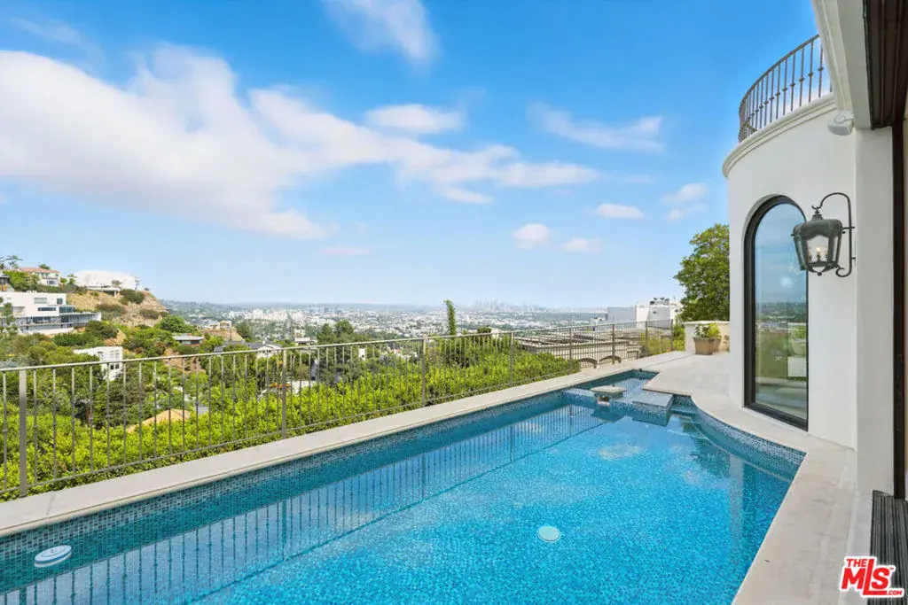 Set above the Chateau Marmont on a quiet cul-de-sac, this 6,687 square foot estate delivers scale, privacy, and unobstructed city views rarely found at this price. A dramatic two-story entry and sweeping staircase introduce the home, with an elevator connecting all three levels for seamless living. Twelve-foot ceilings, Euroline doors, and expansive glass frame panoramic vistas from nearly every room and open to multiple terraces and a mosaic-tiled pool and spa.The main level includes a large living room with terrace access, a formal dining area, and a chef’s kitchen outfitted with Sub-Zero, Thermador, and Miele appliances. Upstairs, the primary suite offers 16-foot ceilings, a fireplace, steam shower, soaking tub, sauna, dual closets, and two private terraces positioned for sunrise and sunset views. Three additional en-suite bedrooms complete the floor.Additional features include a media room, office with its own terrace, interior laundry room, a tranquil garden with mature lemon trees, and a four-car garage with additional parking. Minutes from the Sunset Strip yet completely private, this home combines space, scale, and views in one of the most coveted pockets above West Hollywood. Flexible leasing terms.